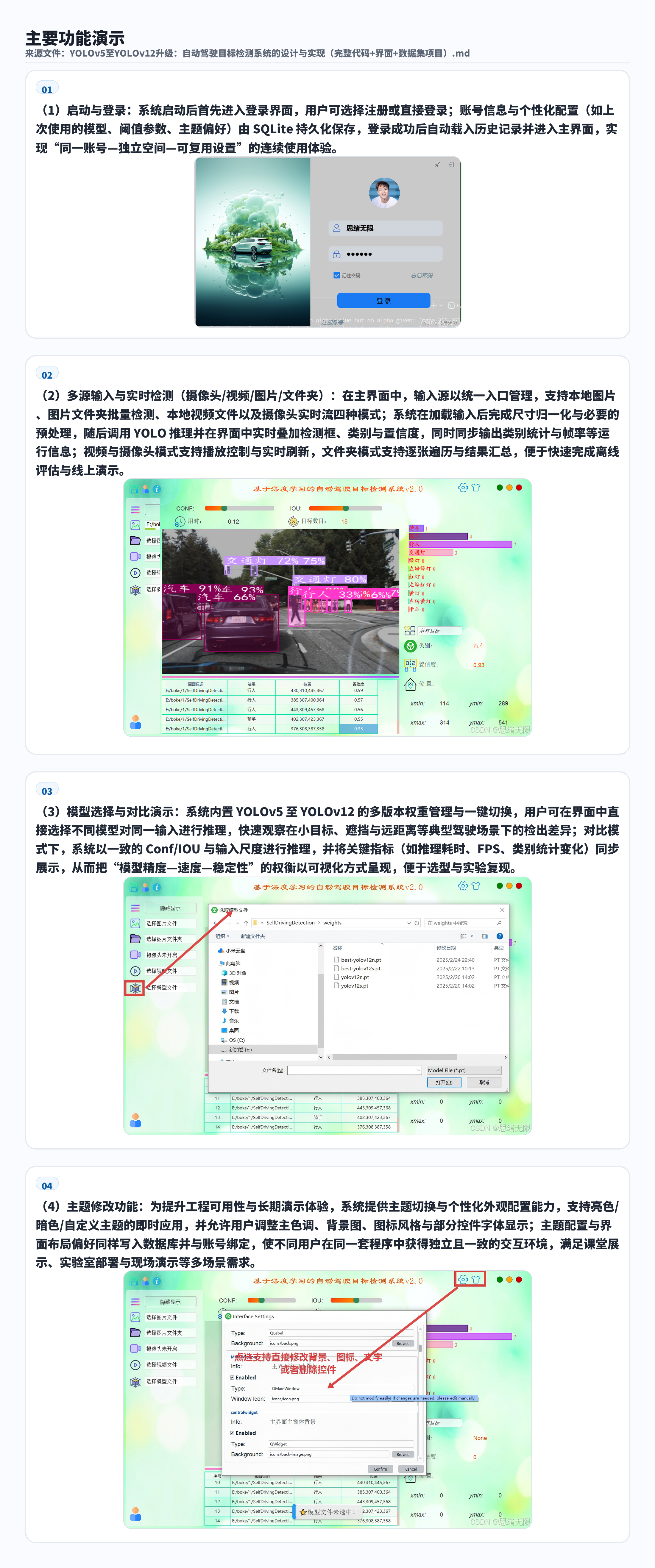 系统架构:采用 PySide6 构建可视化 UI 界面,集成模型推理、结果展示与交互操作,支持一键启动演示