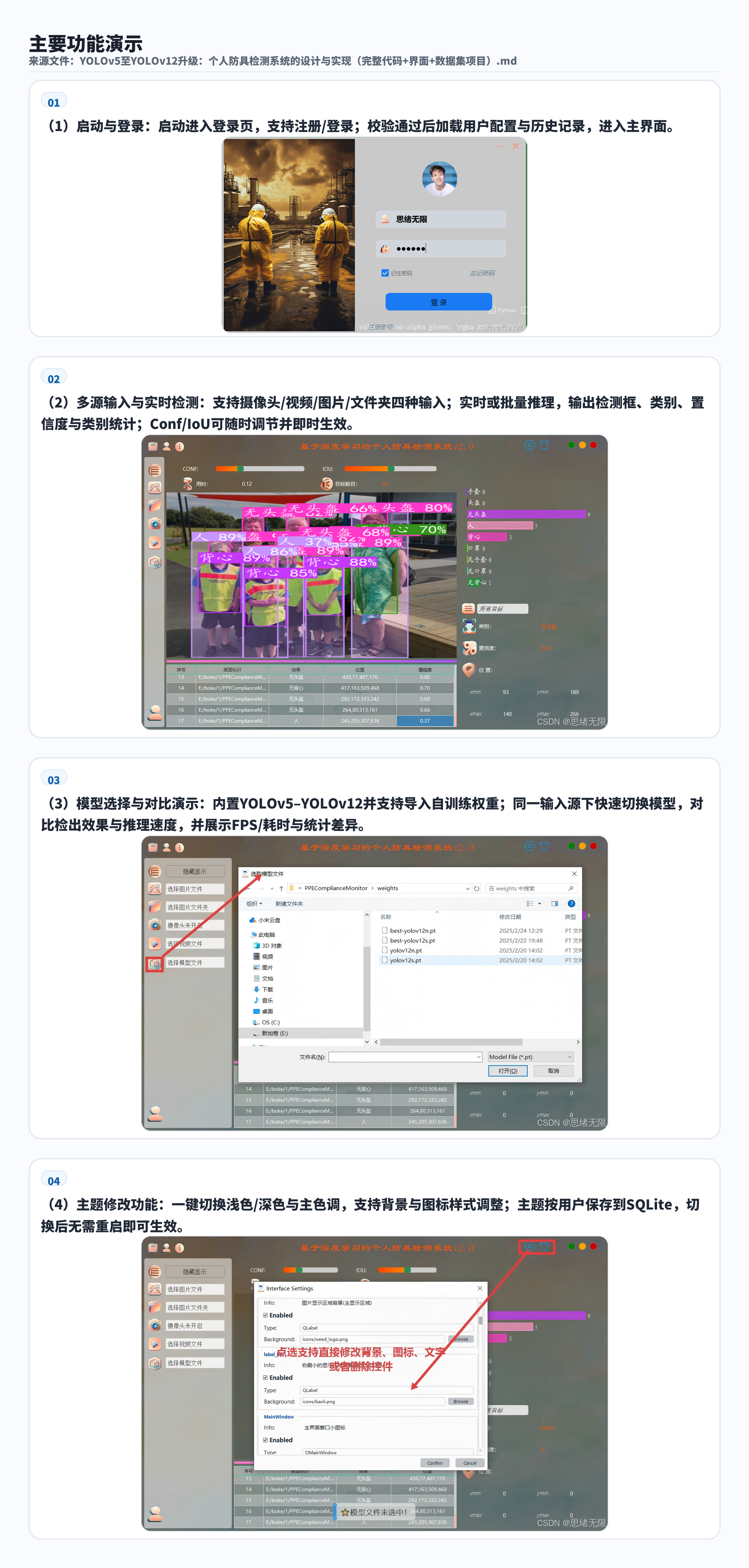 系统架构:采用 PySide6 构建可视化 UI 界面,集成模型推理、结果展示与交互操作,支持一键启动演示