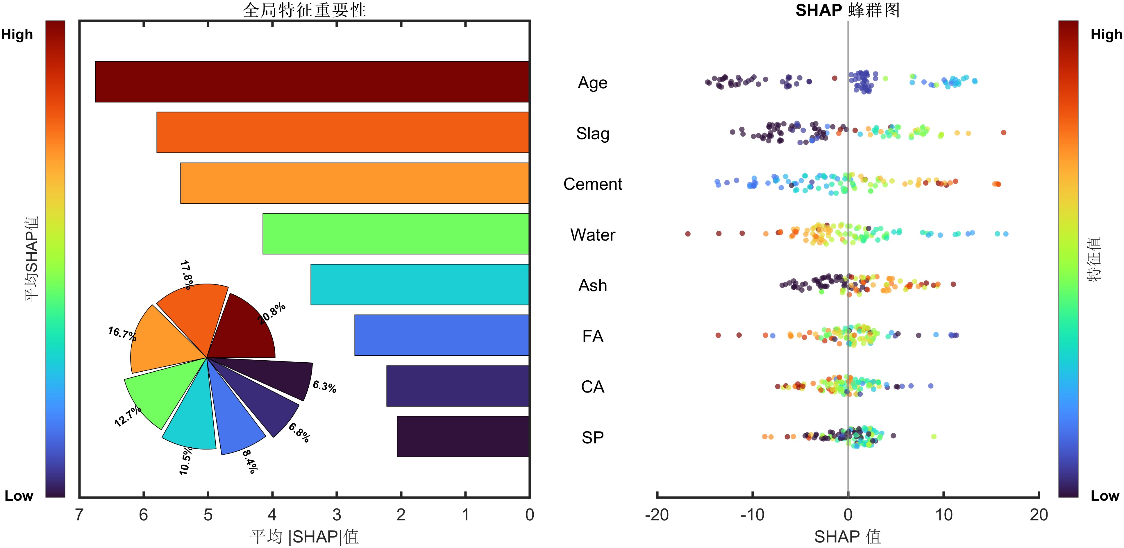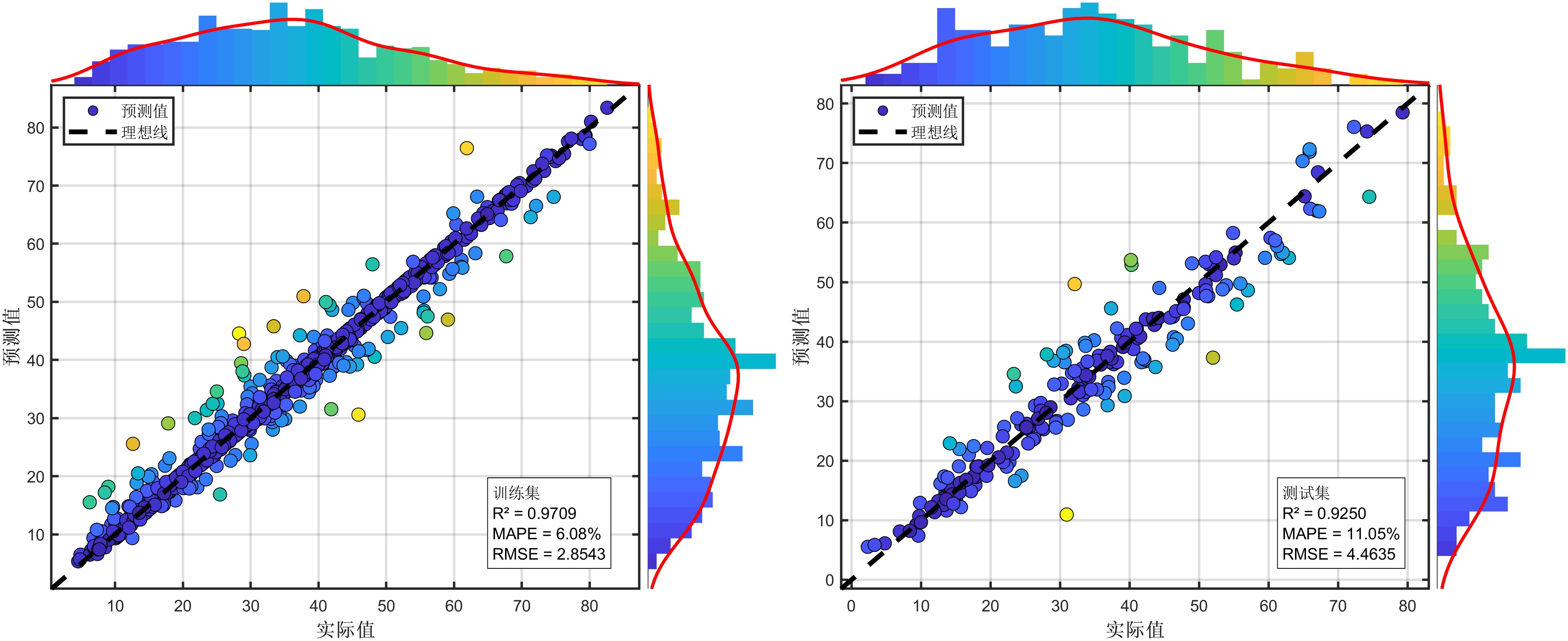 - 图表专业:自动生成6组图表(对比折线图、带边际直方图的散点图、残差图、SHAP条形图+玫瑰图、SHAP蜂群图、特征依赖图)