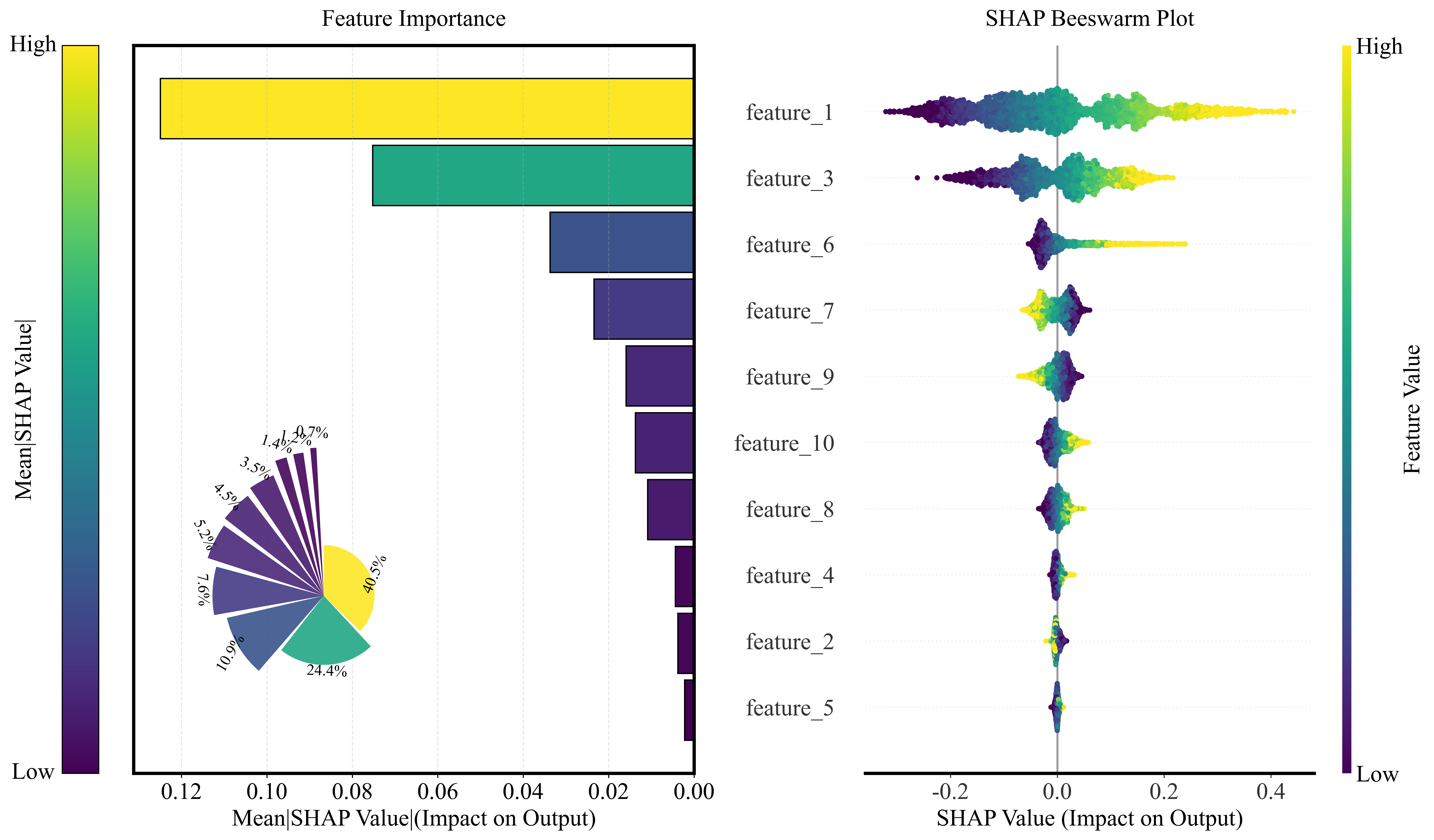摘要图(含特征重要性玫瑰图) + 蜂群图