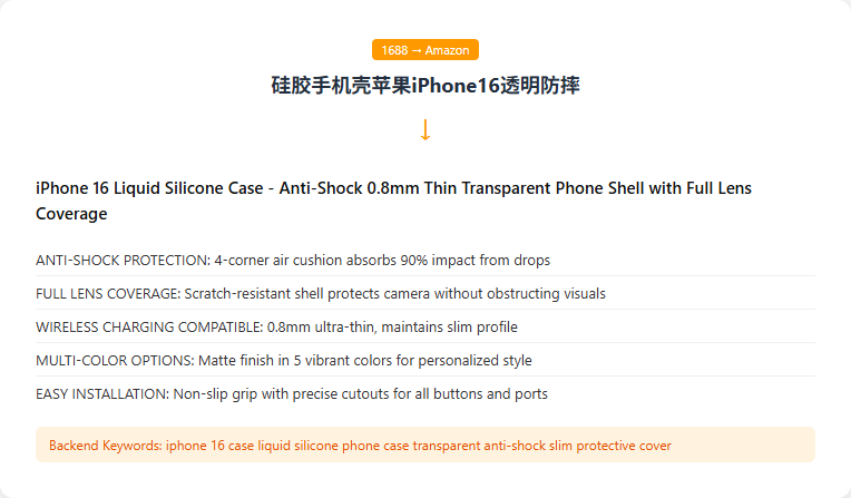 - 从1688拿货做亚马逊?我们也提供1688→亚马逊Listing一键转化服务(¥39),中文产品信息→完整英文Listing。