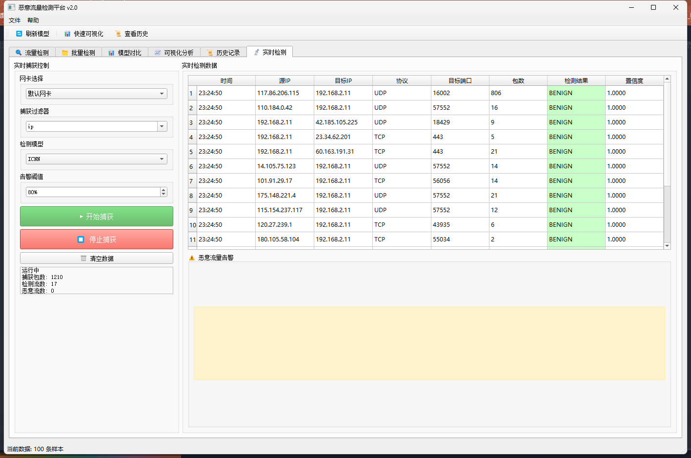 - 实时恶意流量检测与告警