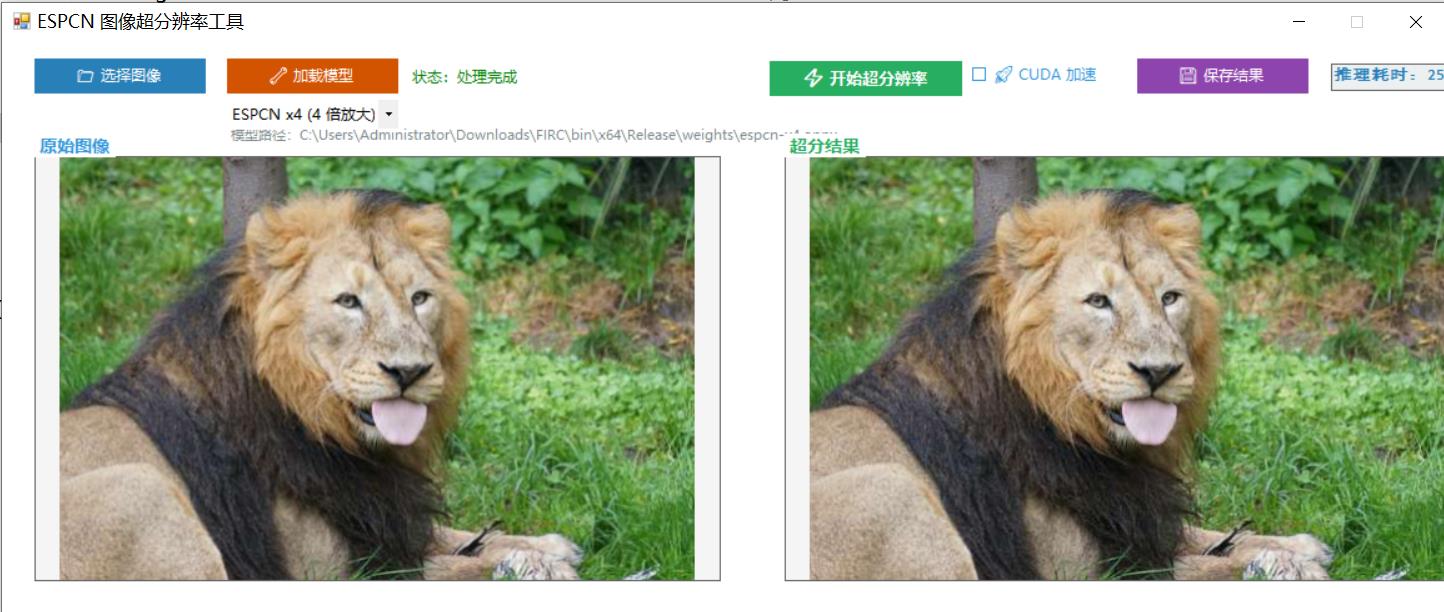 - • 项目名称 :FIRC - ESPCN 图像超分辨率工具