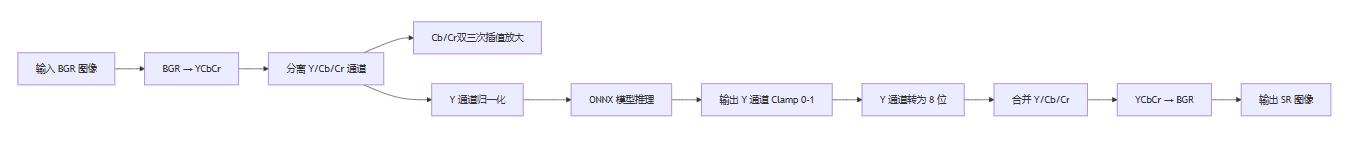 - • 仅对 Y 通道(亮度)进行超分辨率处理