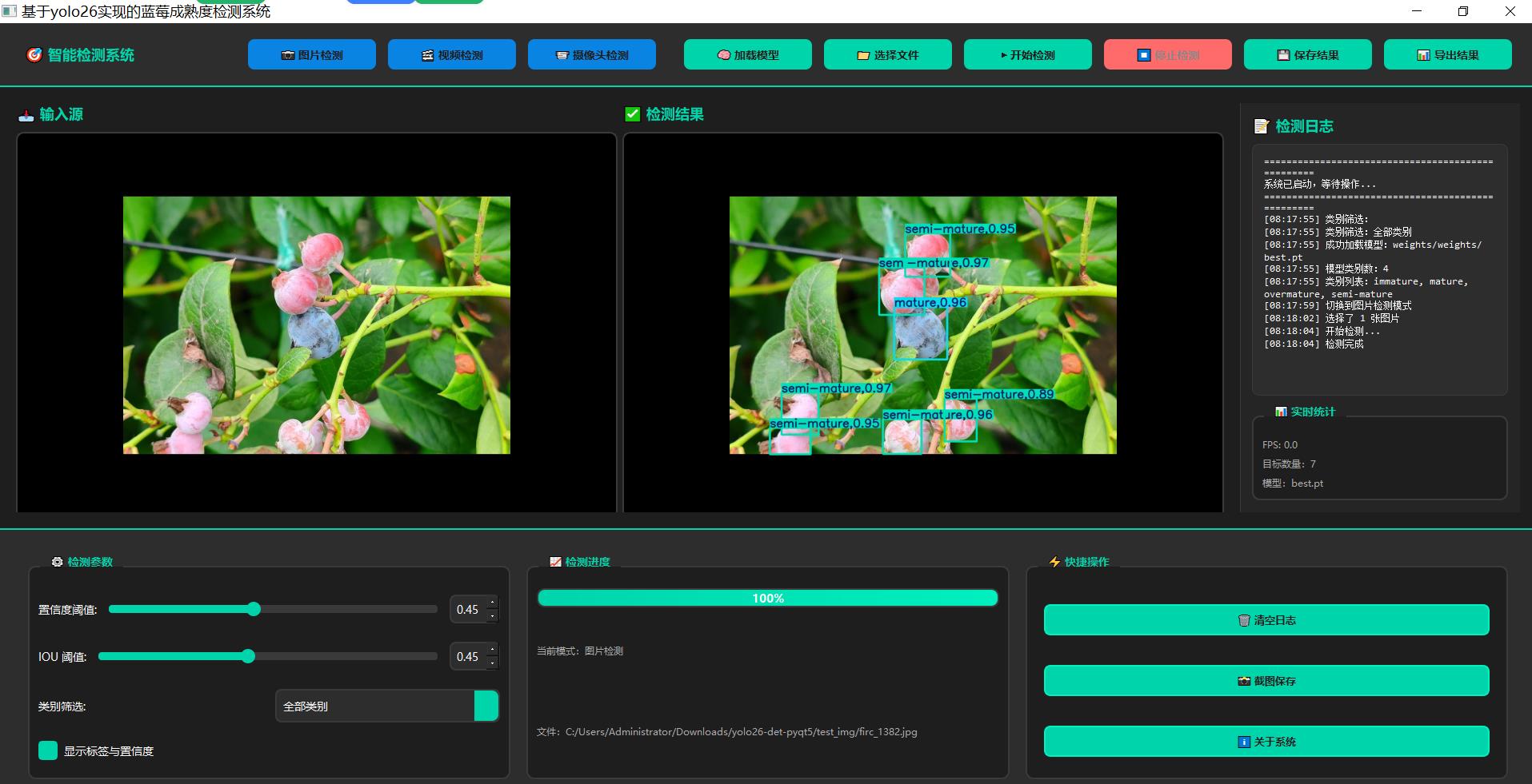 基于yolov26+pyqt5的蓝莓成熟度检测系统python源码+pytorch模型+评估指标曲线+精美GUI界面