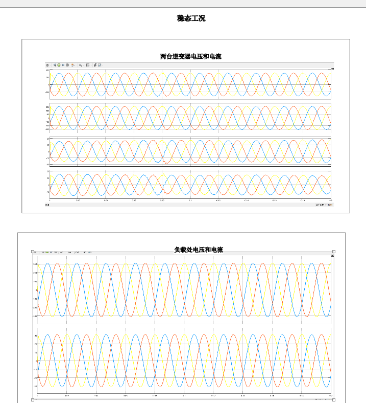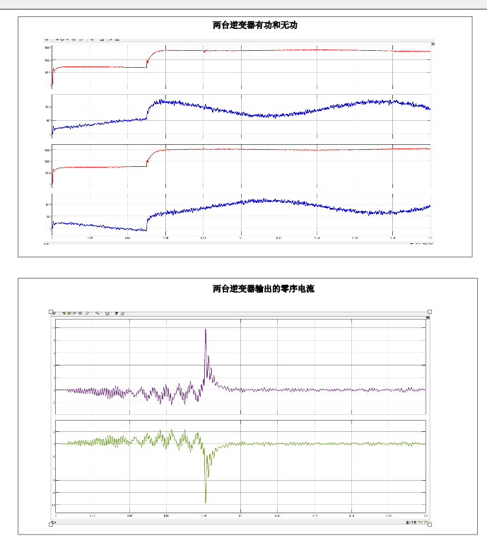 下面就是一个采用软件方法进行环流抑制的仿真案例。两台逆变器共直流母线,三相输出连接公共负载。两台逆变器具备下垂控制和环流抑制能力,实现功率均分和环流抑制;
