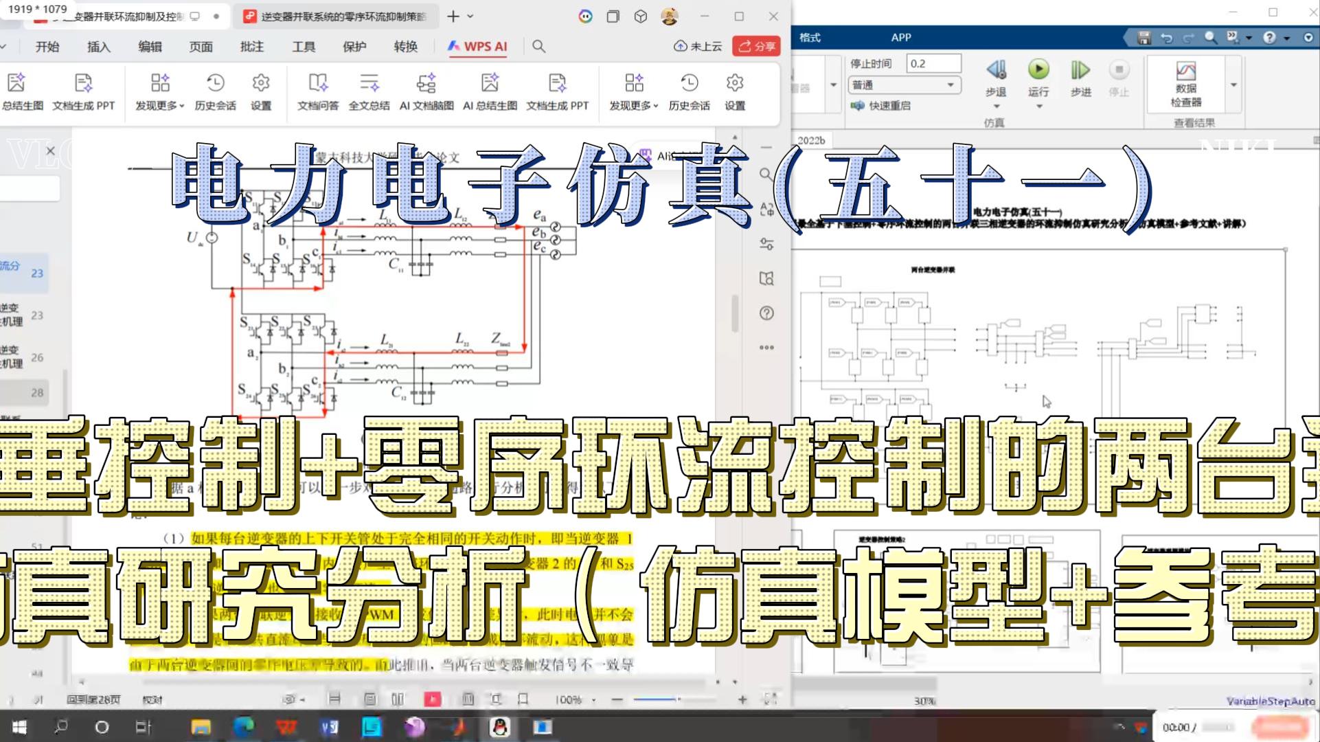 电力电子仿真(五十一)全网最全基于下垂控制+零序环流控制的两台并联三相逆变器的环流抑制仿真研究分析(仿真模型+参考文献+讲解)