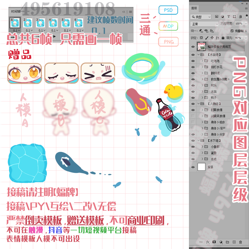 4.该模板可用于:自用、互绘、接稿。请注意,不可用于实体印刷和商用。若您在接私稿时对方有拿去印刷或是做其它事情的需求,请先联系我商谈授权费。若因接稿者不事先说明导致约稿人擅自拿去印刷/商用,会要求额外赔偿。