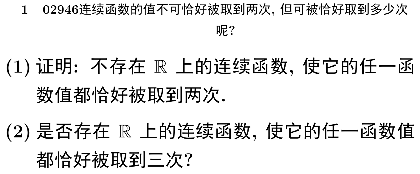 研赛02946连续函数的值不可恰好被取到两次, 但可被恰好取到多少次呢?