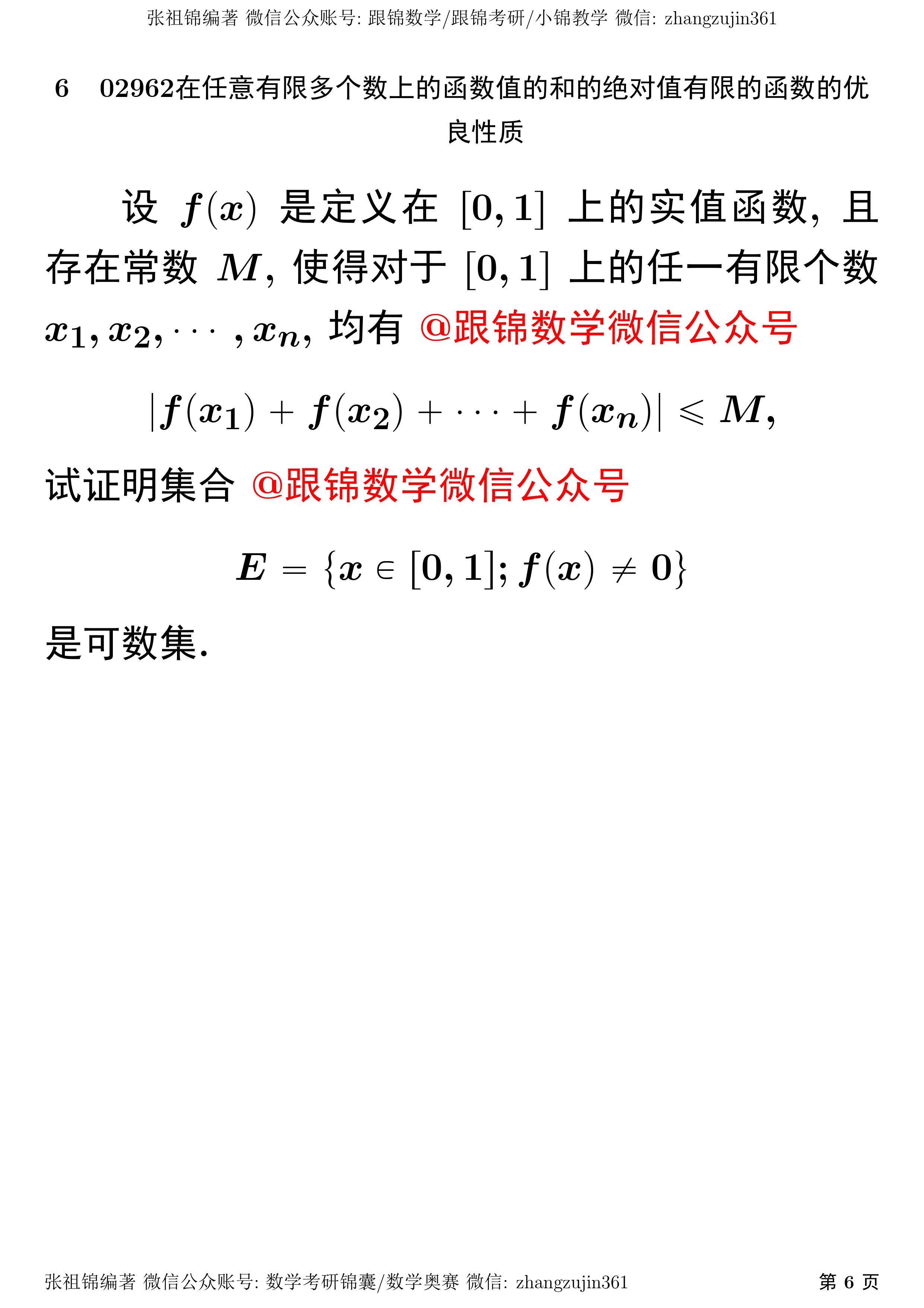 研赛02962在任意有限多个数上的函数值的和的绝对值有限的函数的优良性质