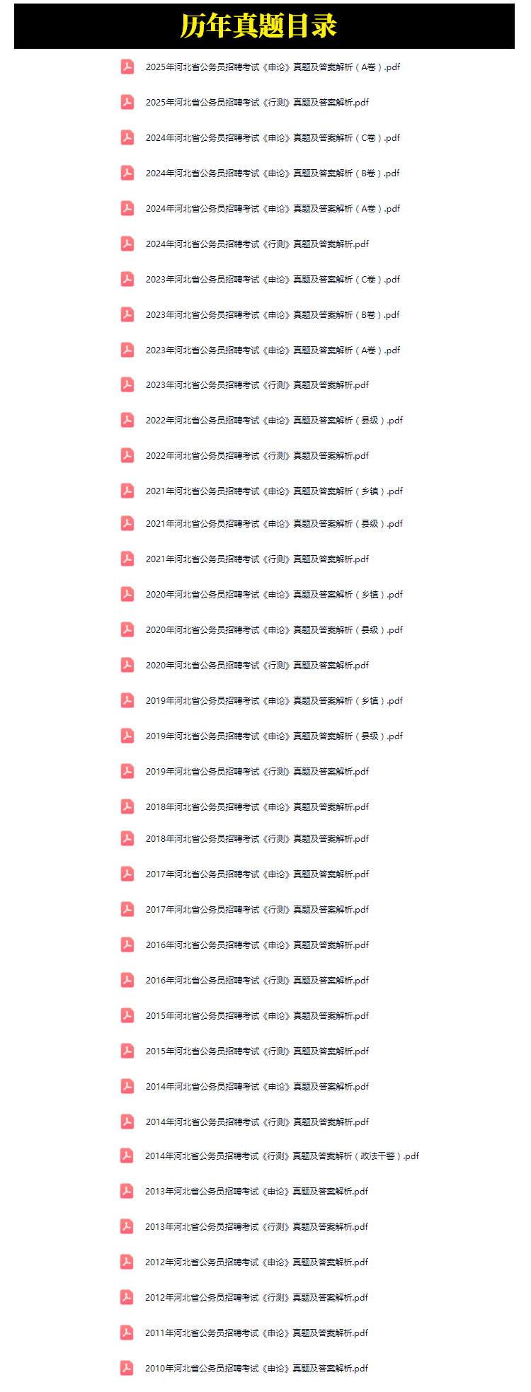 2010年-2025年河北省公务员招聘考试笔试历年真题38套(持续更新)