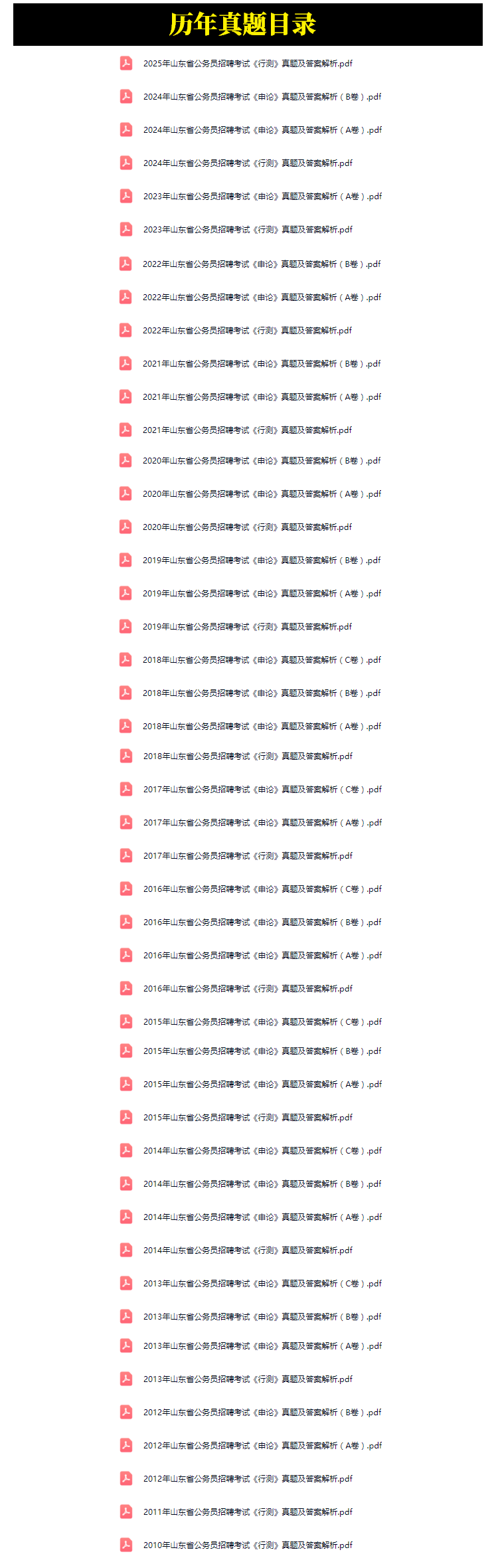 2010年-2025年山东省公务员招聘考试笔试历年真题46套(持续更新)