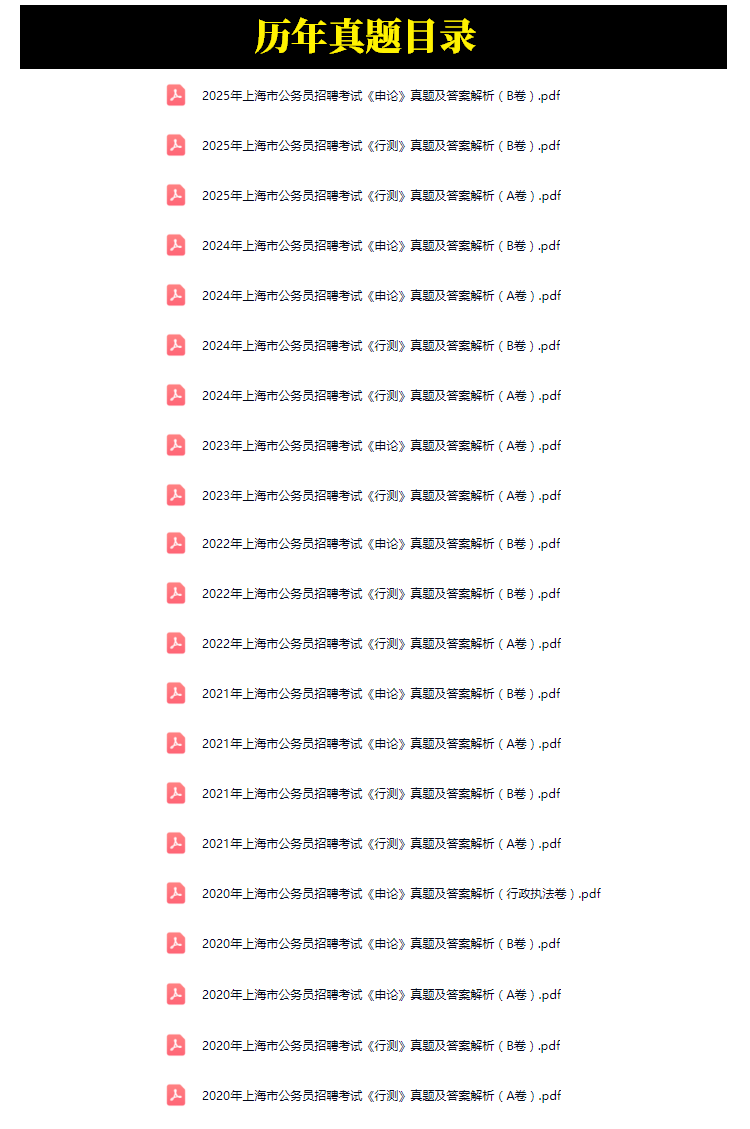 2011年-2025年上海市公务员招聘考试笔试历年真题54套(持续更新)