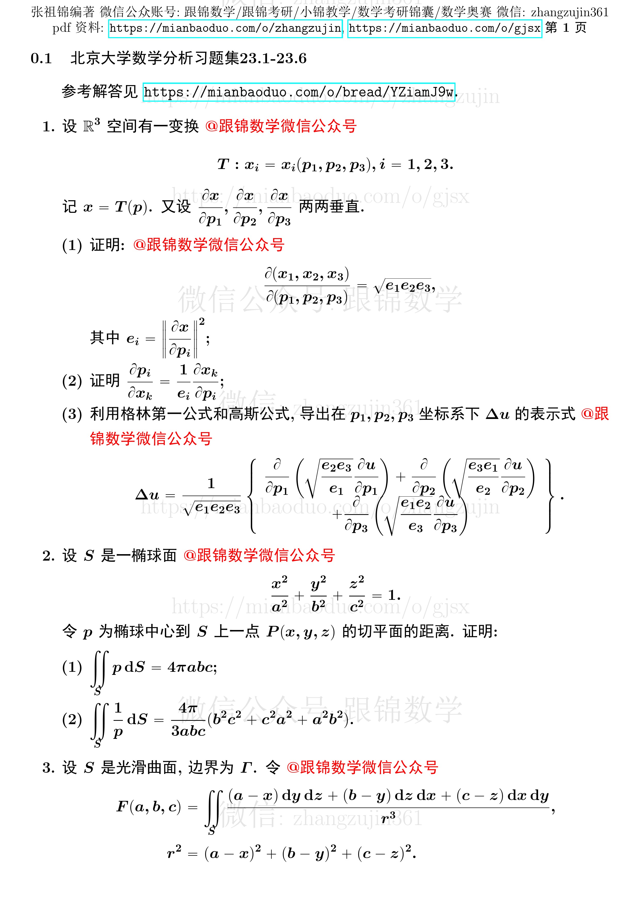 北京大学数学分析习题集23.1-23.6参考解答10页10元