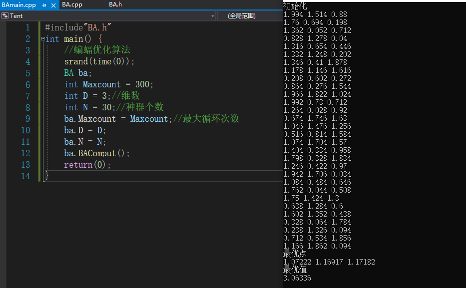 蝙蝠优化算法求解大规模函数最值 C++代码