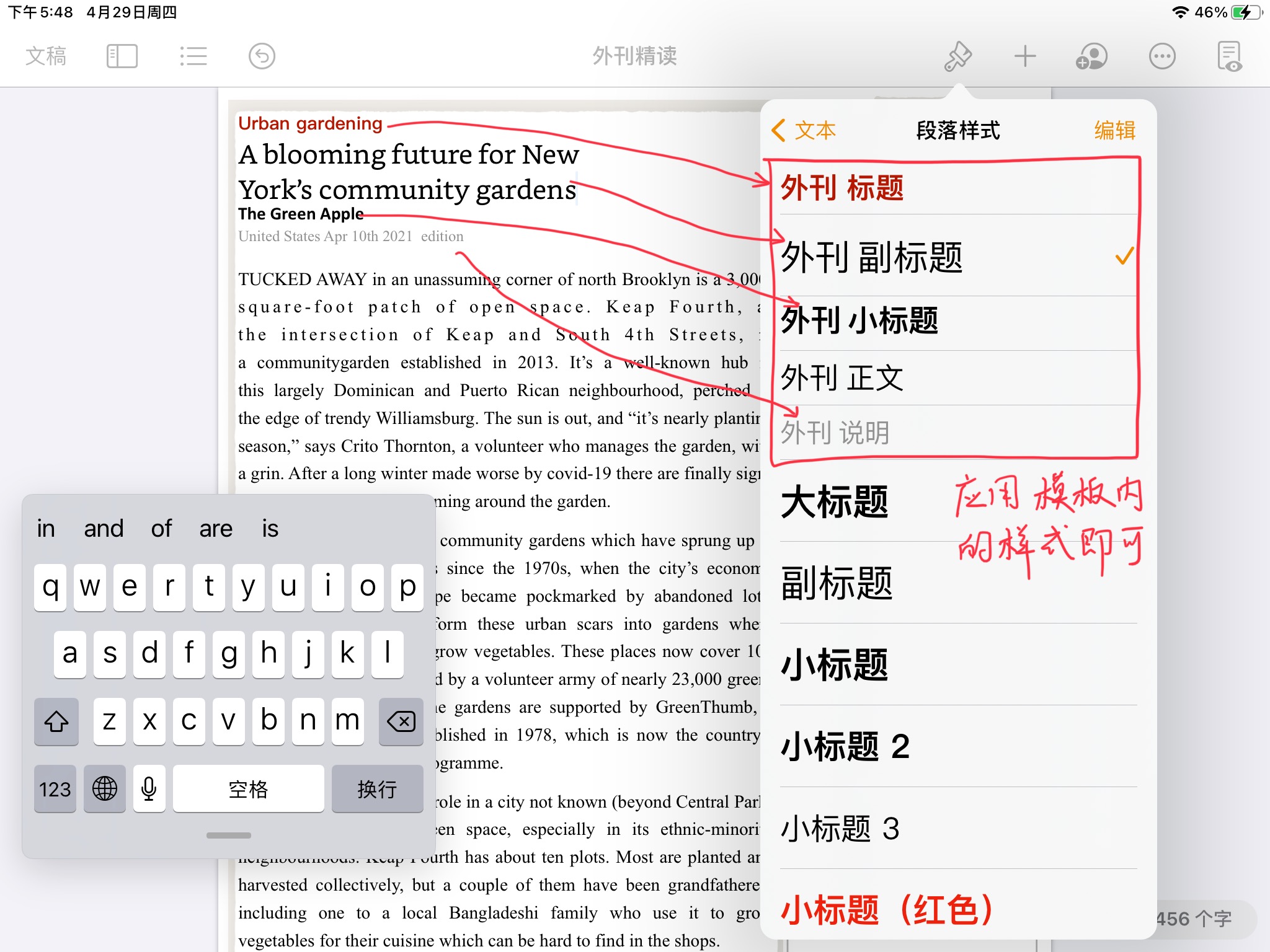使用方法:下载模板-用pages打开-粘贴进去自己准备精读的文本-应用文字样式-导出PDF至goodnotes/notability