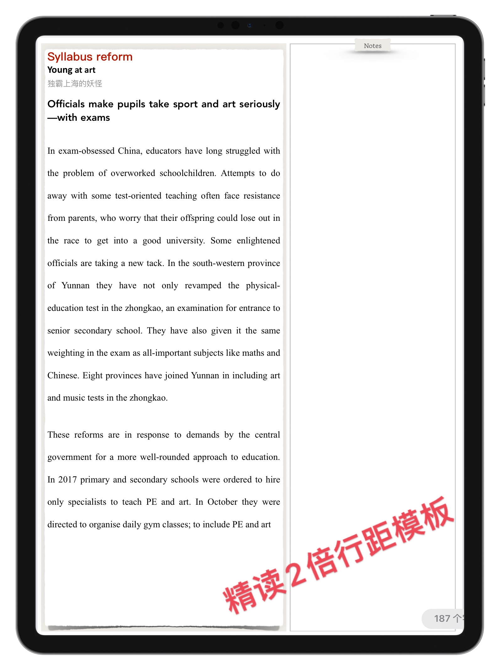 外刊精读模板pages/pdf 新增了横版&带翻译区域的模板,见最后一张示意图