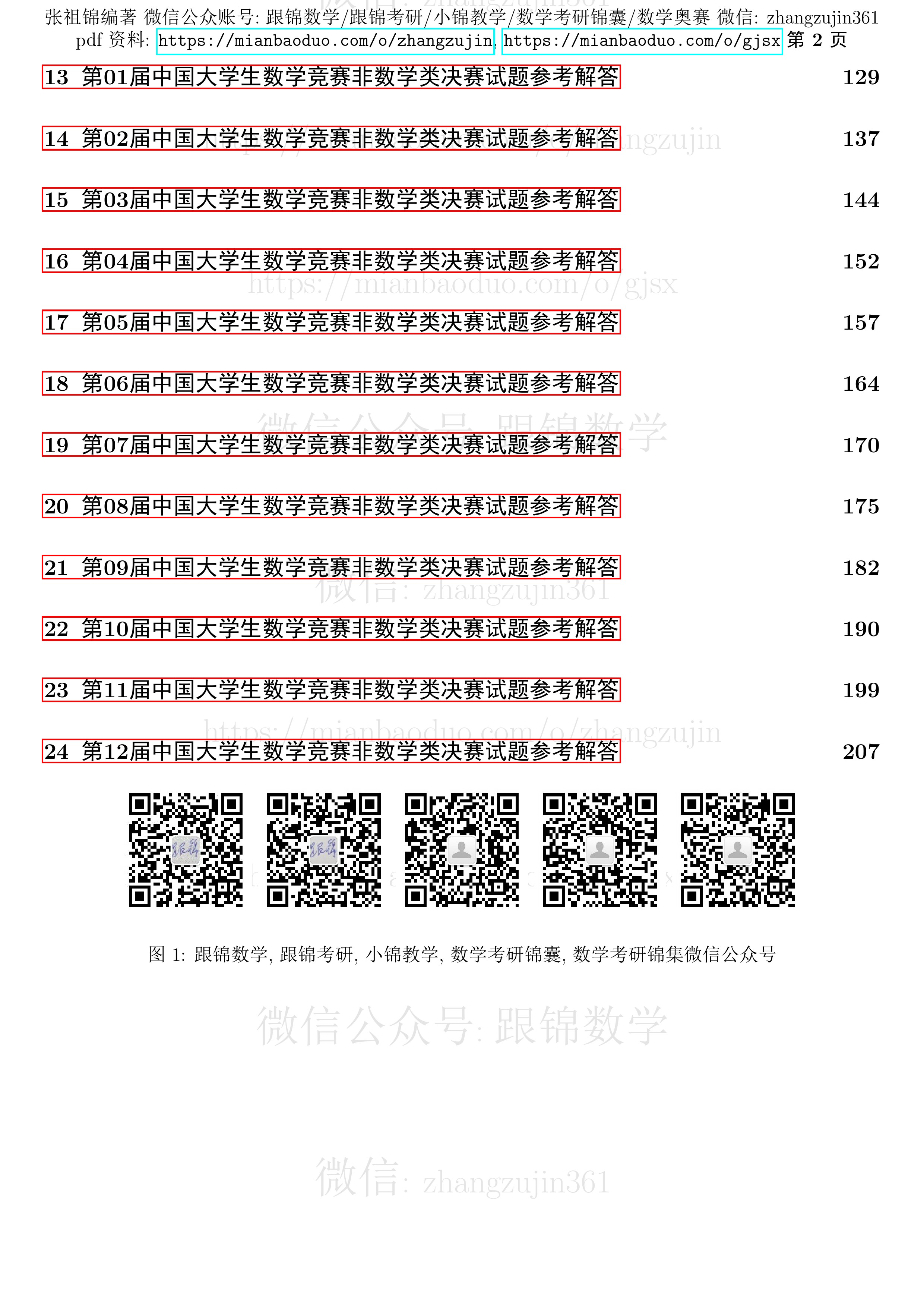 付费后直接下载第01-12届全国大学生数学竞赛非数学类决赛试题及其参考解答 pdf, 一共 213 页.