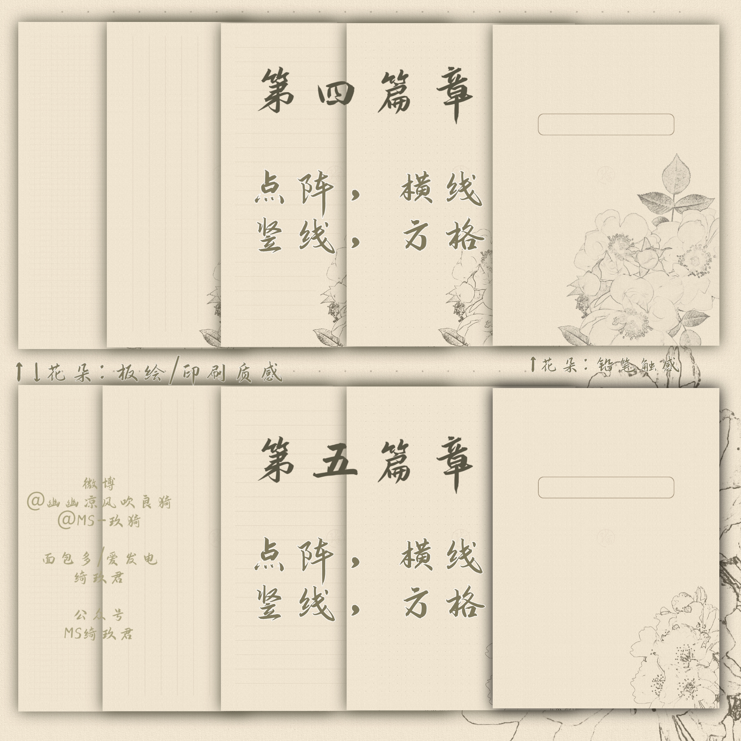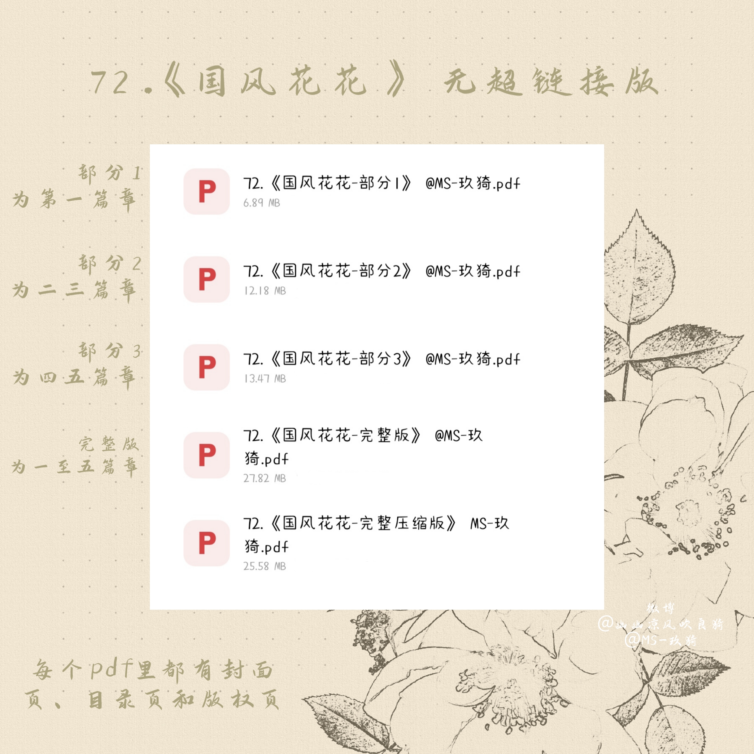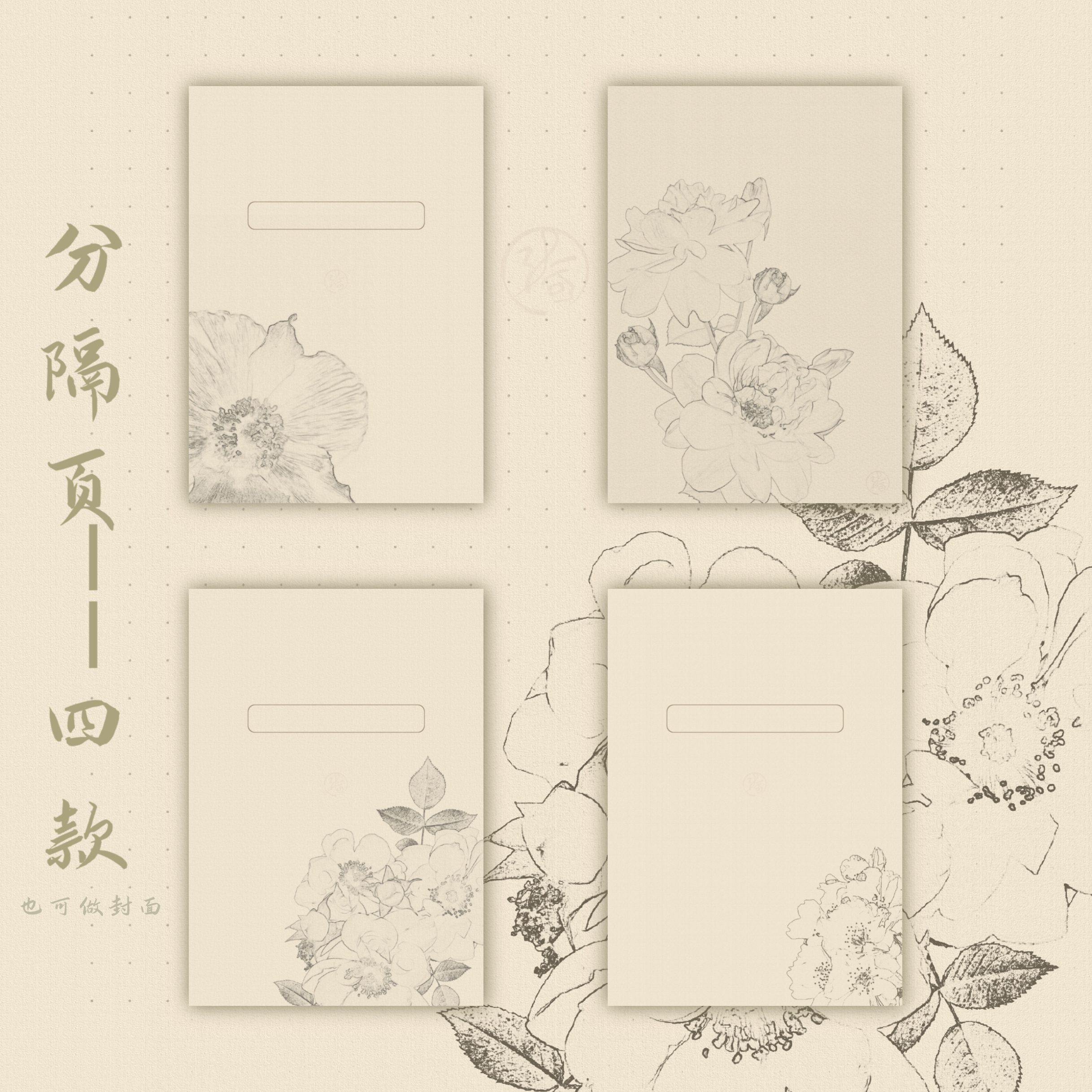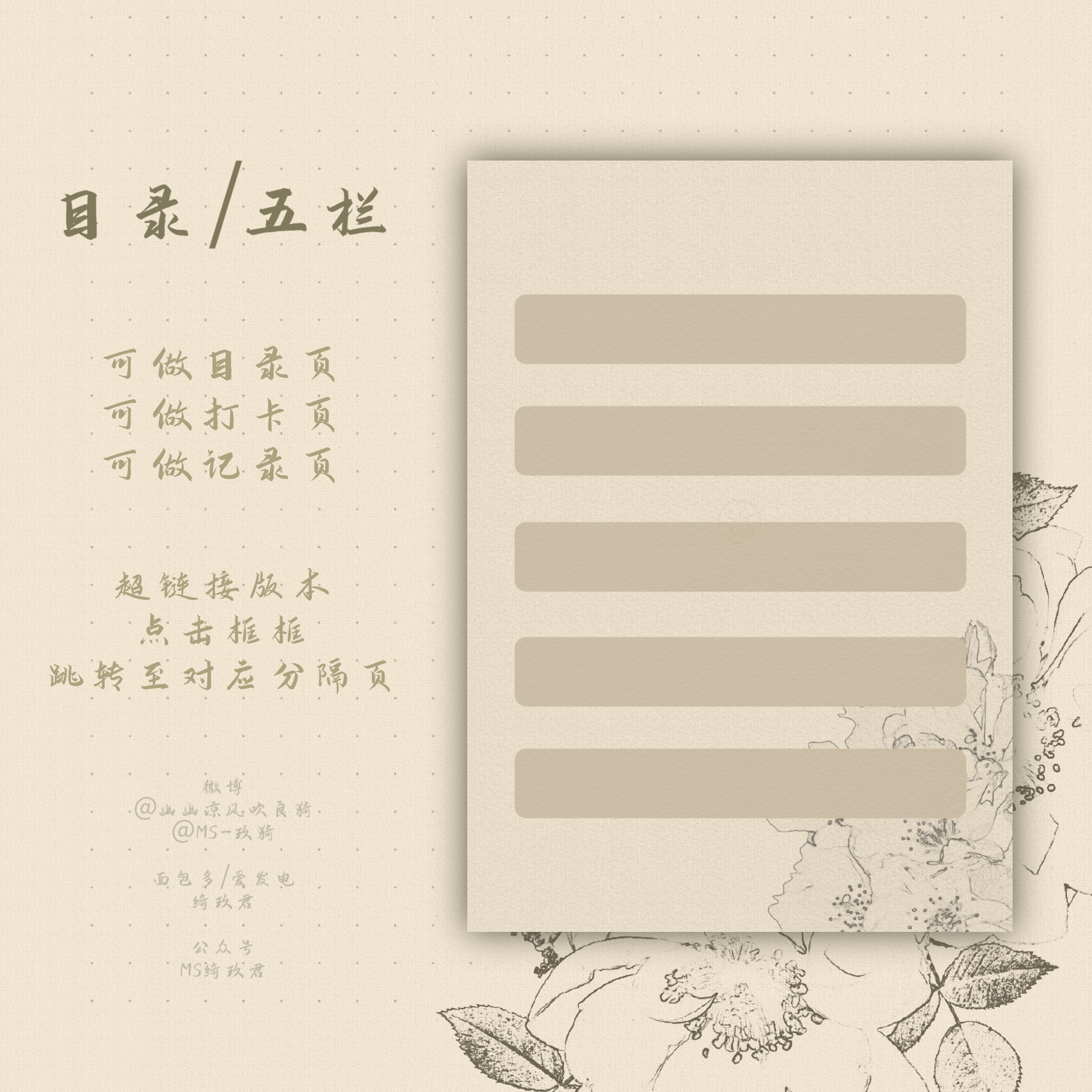 关于超链接的位置:每页的花花上(主要是花蕊部分)都有超链接,分别跳转至目录页、分隔页、封面、版权页,可自行尝试。超链接的使用演示的视频我已经剪好了,之后会发布在b站(MS_柒年玖玥)和微博