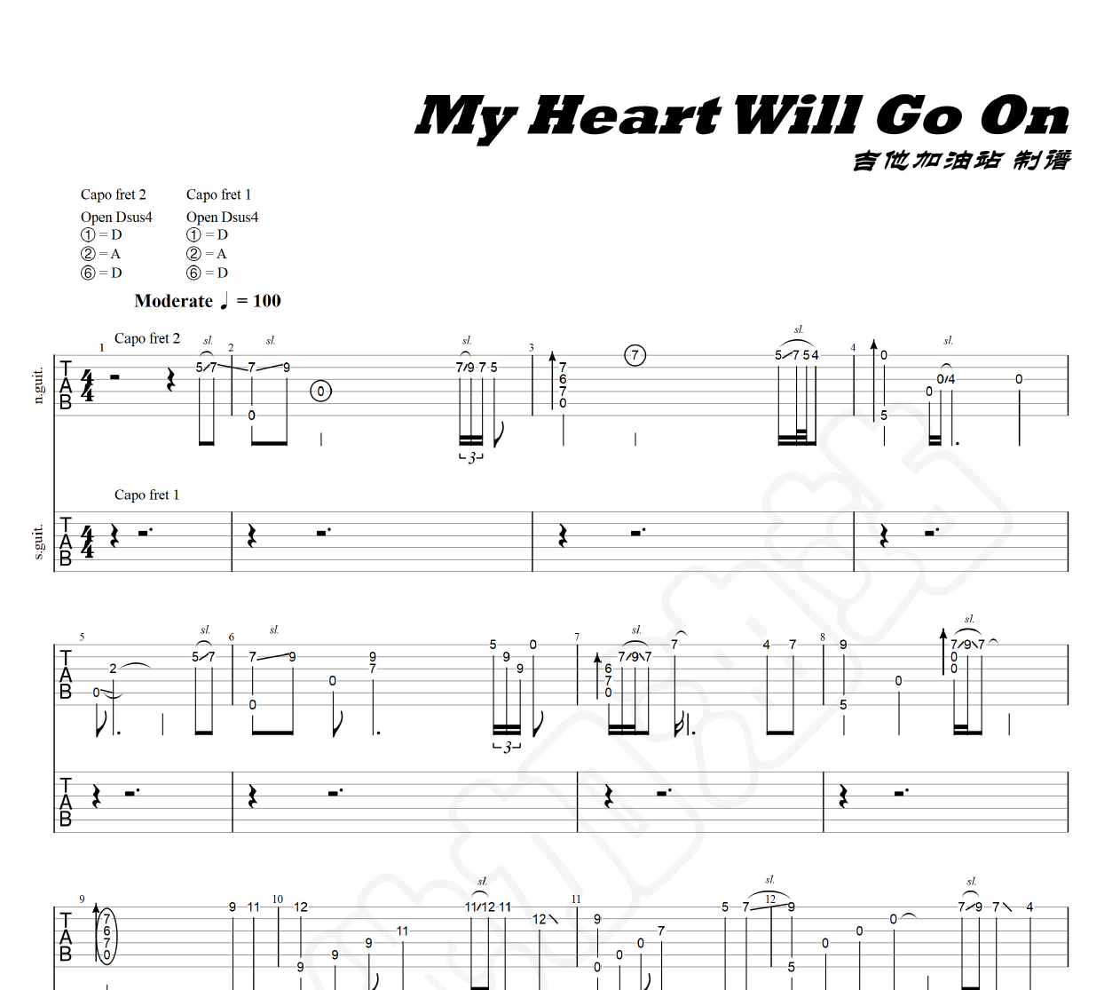 作品简介 曲目: 我心永恒 My Heart Will Go On演奏者: 舒瓦洛夫 扒谱: 吉他加油站 - 油叔特殊调弦:DADGAD变调夹: 2品 ,中途换1品文件格式: PDF难度: ⭐⭐⭐曲谱预览: 创作时间:2021-06-18 10:31:51