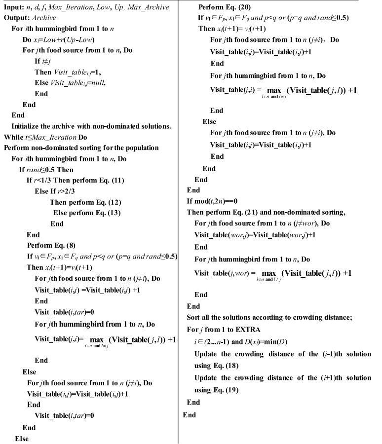 多目标人工蜂鸟算法(multi-objective artificial hummingbird algorithm,MOAHA)是2022年提出的一种高效的多目标优化算法,其采用基于拥挤距离的动态消除法( dynamic elimination-based crowding distance ,DECD)维护外部存档。