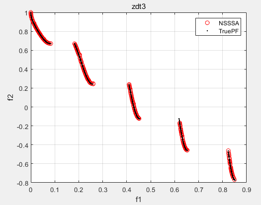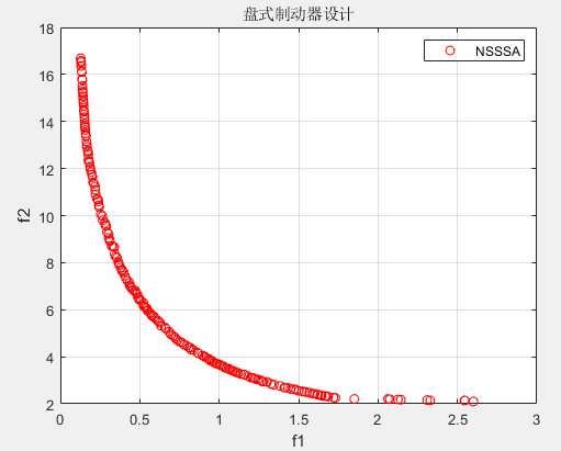 将非支配麻雀搜索算法(Non-Dominated Sorting Sparrow Search Algorithm,NSSSA)用于求解46个多目标测试函数(ZDT1、ZDT2、ZDT3、ZDT4、ZDT6、DTLZ1-DTLZ7、WFG1-WFG10、UF1-UF10、CF1-CF10、Kursawe、Poloni、Viennet2、Viennet3)以及个工程应用(盘式制动器设计),并采用IGD、GD、HV、SP进行评价。