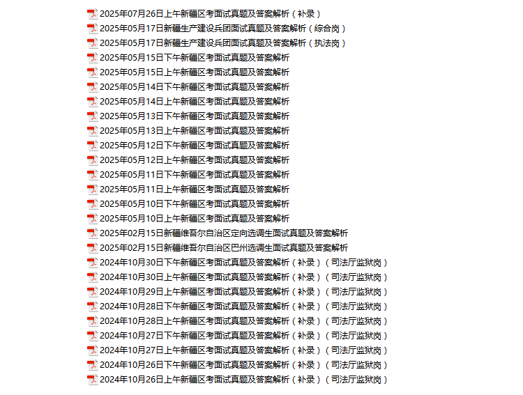 2015年-2025年新疆区考公务员招聘考试面试真题143套