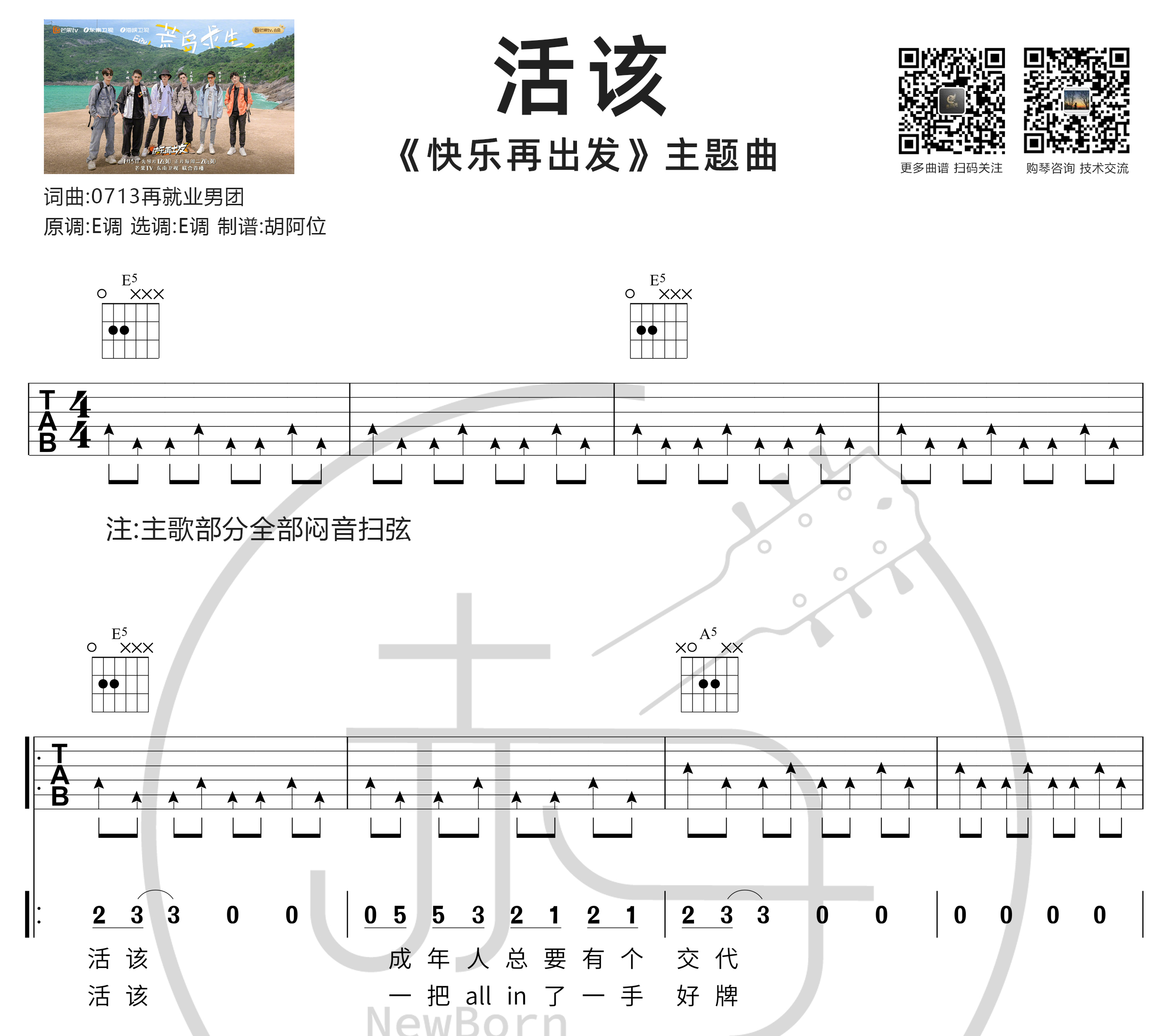 吉他谱一份(包含和弦,Tab谱,简谱,以及关于曲谱练习中遇到的问题答疑服务)
