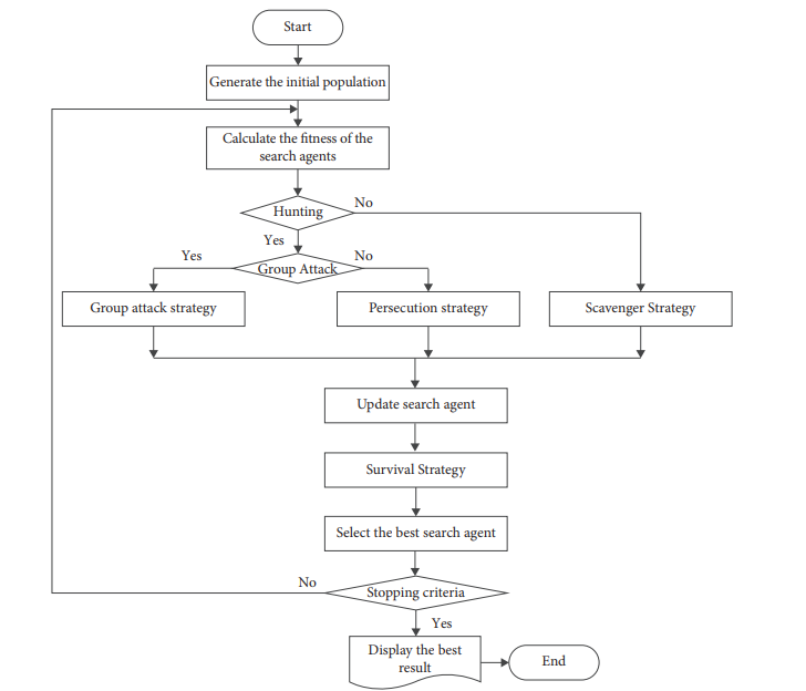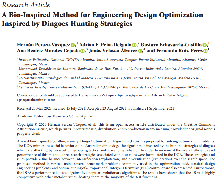 野狗优化算法(DOA)由Peraza-Vázquez等人于2021年模仿澳大利亚野狗的社会行为。该算法的灵感来自野狗的狩猎策略,这些策略包括迫害攻击,分组策略和拾荒行为。为了提高该方法的整体效率和性能,DOA中制定了四条规则的三种检索策略。