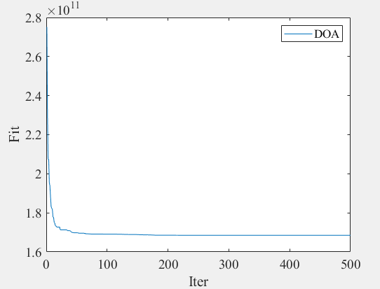 DOA在CEC2013中F1的求解结果,增大迭代次数效果更佳,DOA作为2021年最新算法在求解大规模优化问题CEC2013上具有极大的潜力。