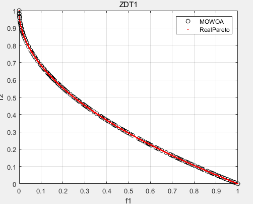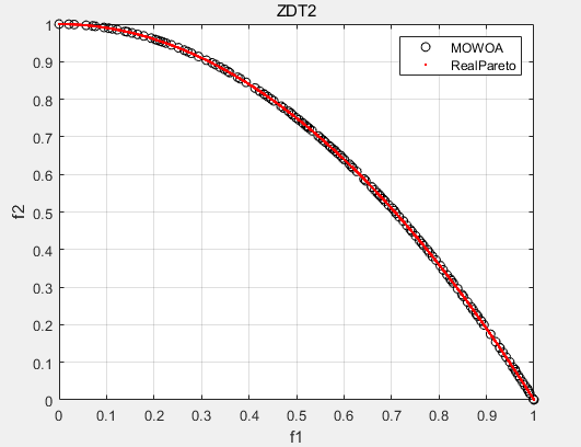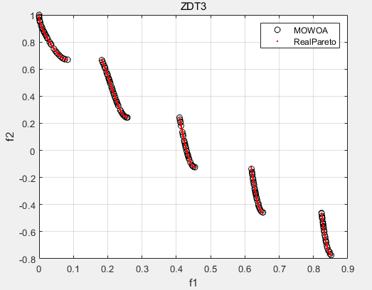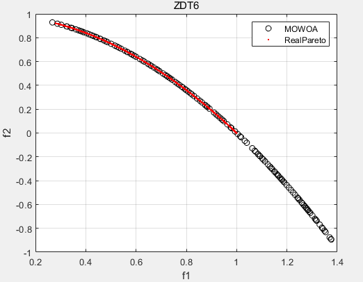 将鲸鱼优化算法的优良策略与多目标优化算法框架结合形成多目标鲸鱼优化算法(MOWOA),为了验证所提的MOWOA的有效性,将其在22个多目标测试函数(ZDT1、ZDT2、ZDT3、ZDT4、ZDT6、Kursawe、Poloni、Viennet2、Viennet3、UF1-UF10、CF1-CF3)上实验。