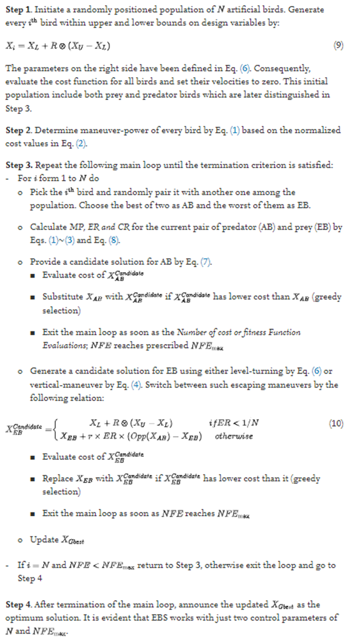 逃逸鸟搜索算法(Escaping Bird Search,EBS)由Mohsen Shahrouzi和Ali Kaveh于2022年提出,该算法的灵感来自鸟类的空中逃生策略,以避免被猎人捕获。