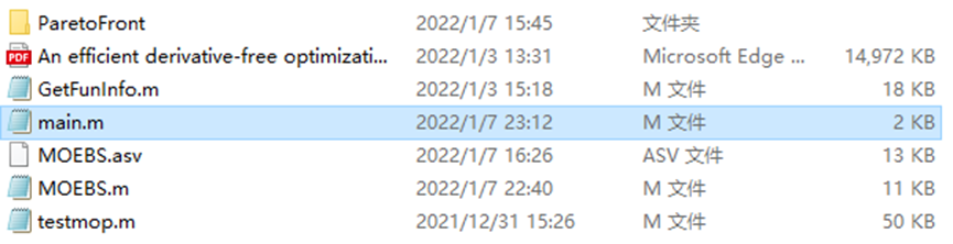 源文件夹包含MOEBS所有代码(含46个多目标测试函数)以及原始文献。代码可直接运行,支持二次开发。
