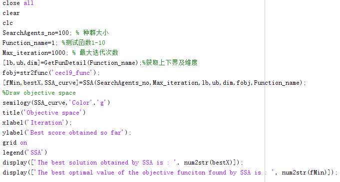 将麻雀搜索算法用于求解CEC2019,定义种群大小为100,最大迭代次数为1000,部分实验结果如下:
