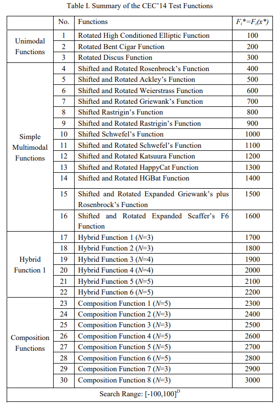 CEC2014测试集共有30个测试函数,每个测试函数可选择维度分别为10D、30D、50D、100D。