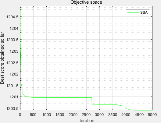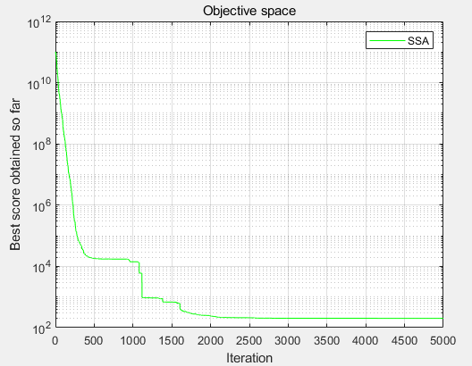 SSA在F2和F12上能够快速求得理论最优值,在F22上求得的值与理论值较为接近,增大迭代次数效果更佳,由此可知SSA在CEC2014上具有一定的竞争优势,潜力十足。