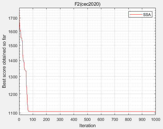 F2:目标函数值:1100,SSA求得值:1107.0792