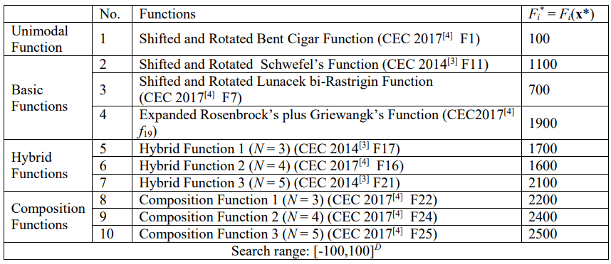 CEC2020共有10个无约束测试函数测试维度包含:2D、5D、10D、15D、20D。CEC2020无约束测试问题随着维度的增加求解极其困难。