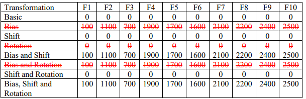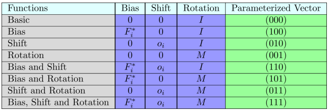CEC2021最终求解如下5种组合(标红的3组不作为测试组合)