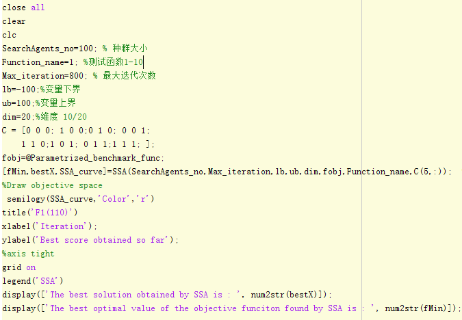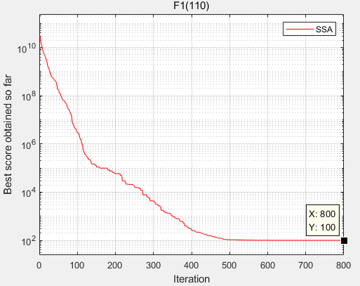 F1:目标函数值:100,SSA求得值:100