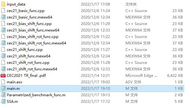源文件夹包含SSA求解CEC2021的所有代码,测试函数共10个。