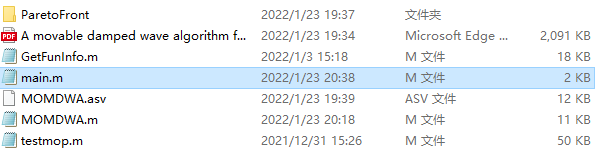 源文件夹包含MOMDWA所有代码(含46个多目标测试函数)以及原始文献。代码可直接运行,支持二次开发。