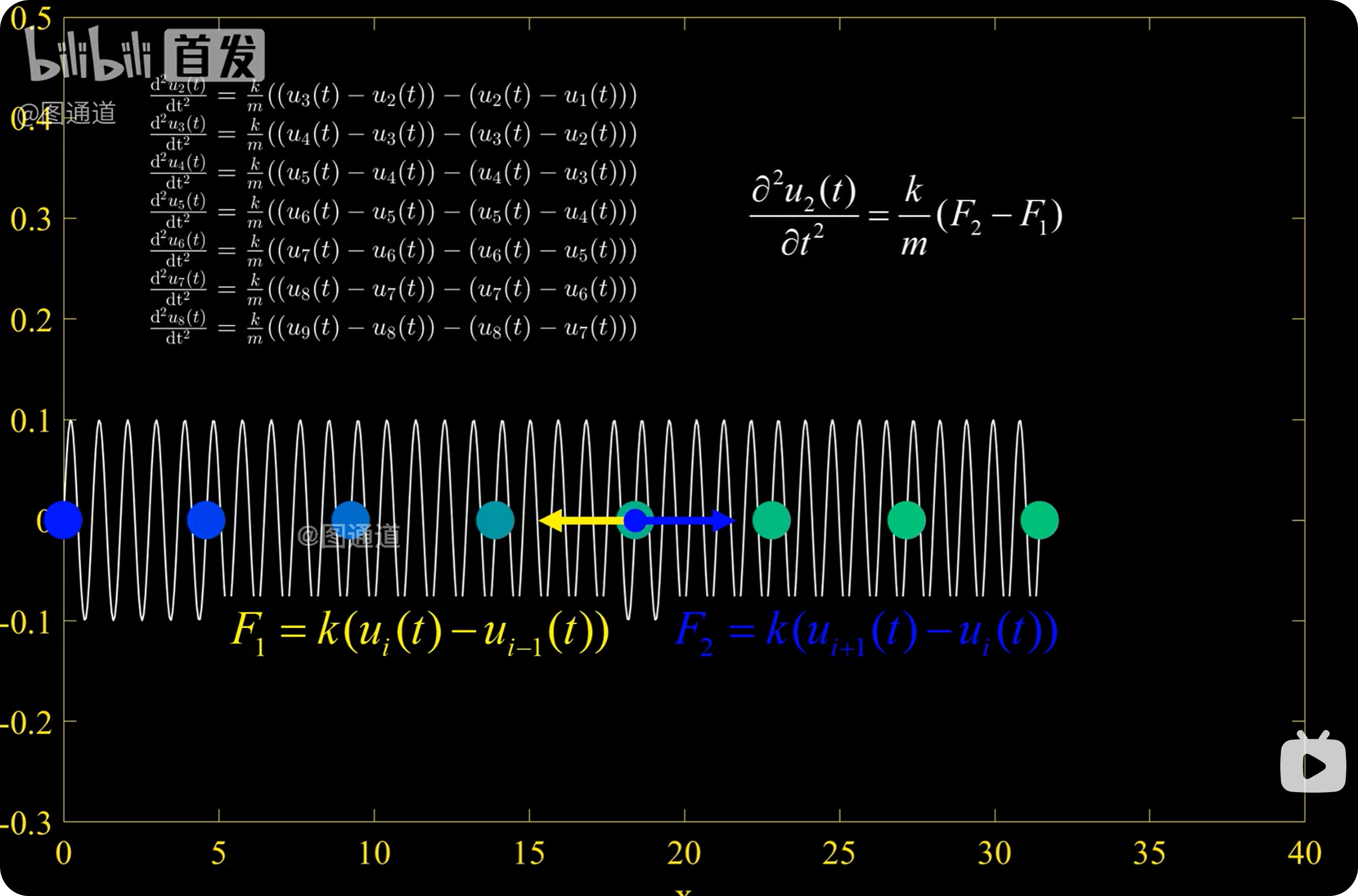 % 一维波动方程数值解