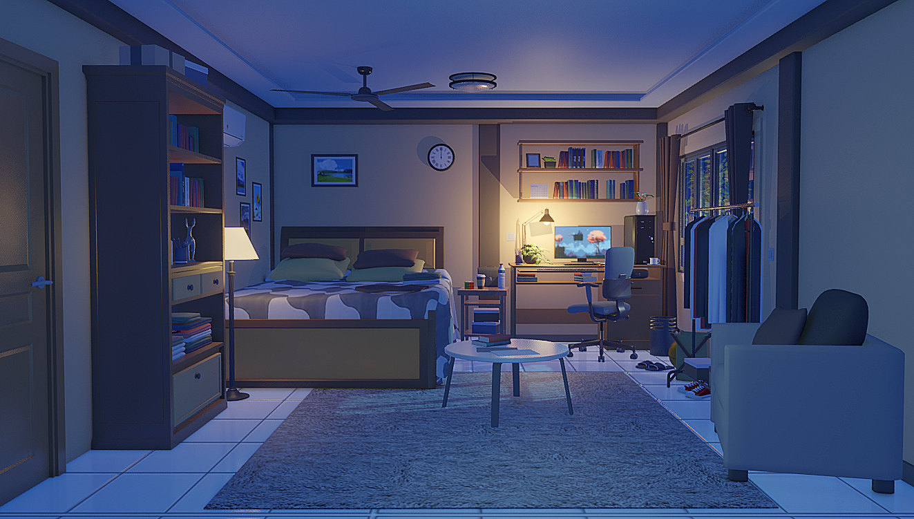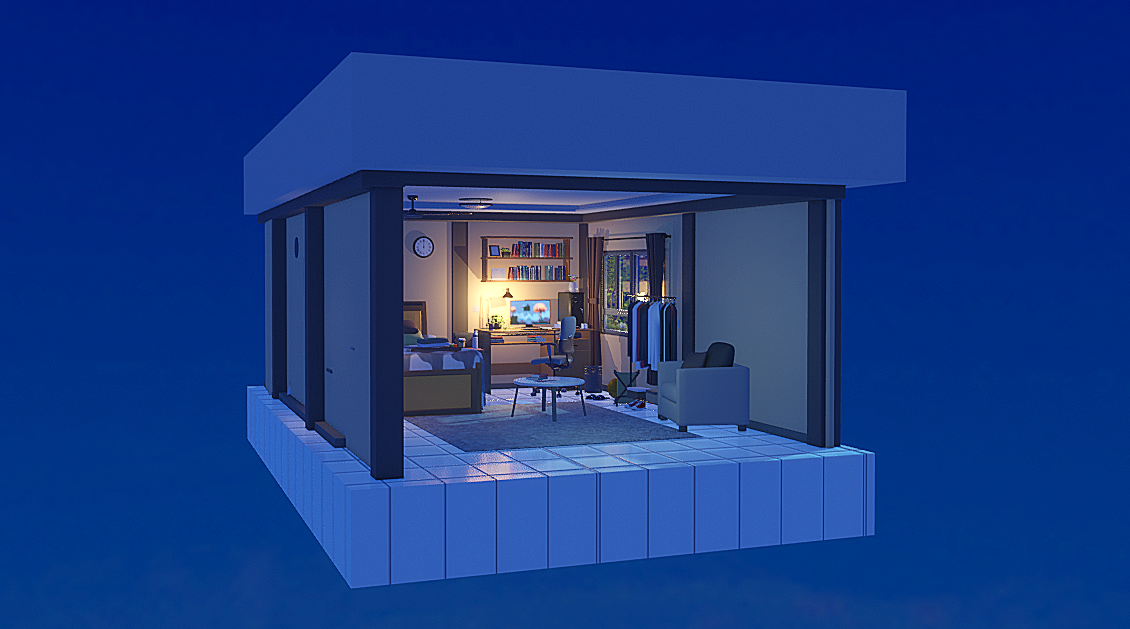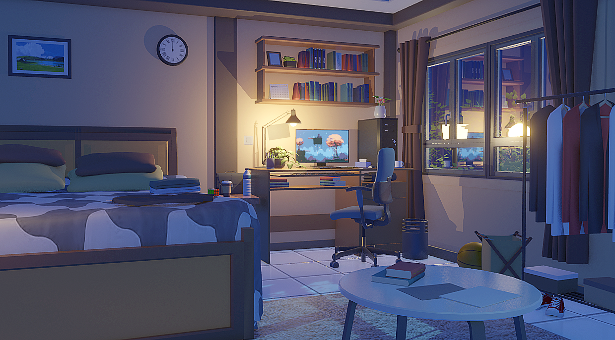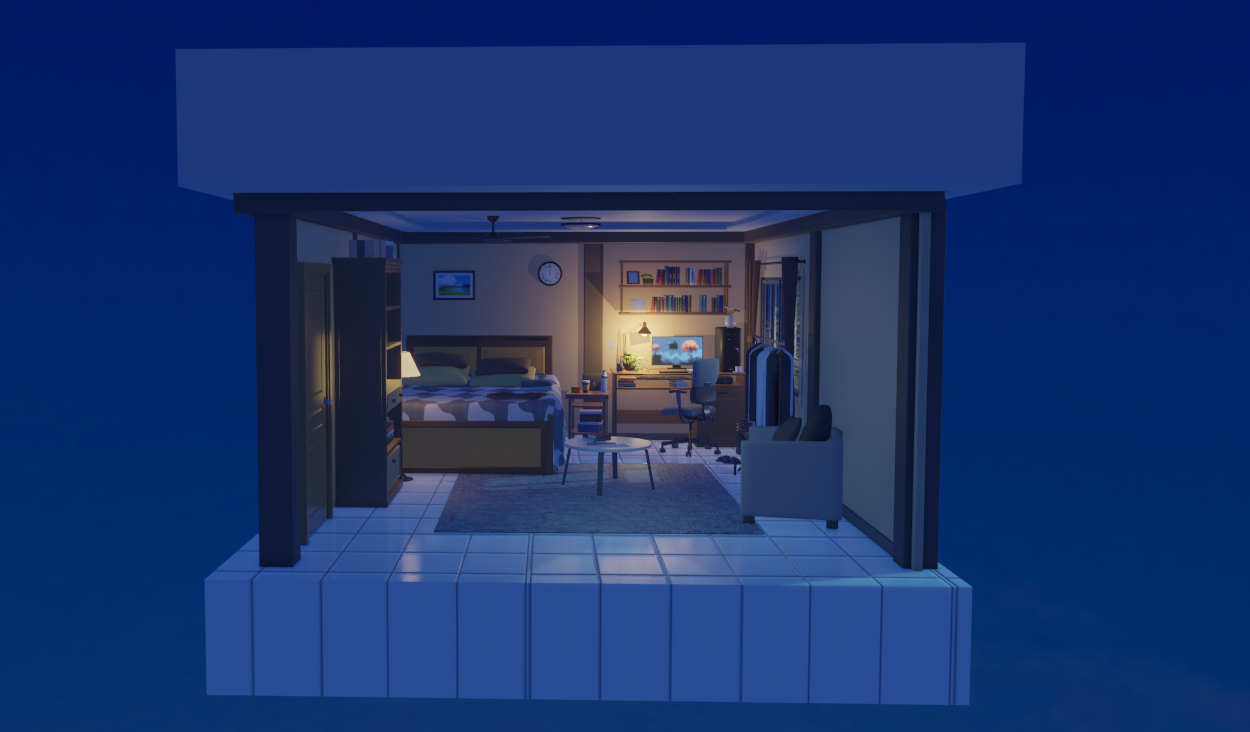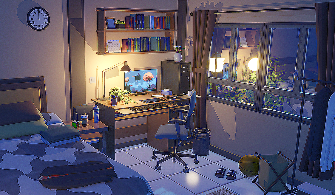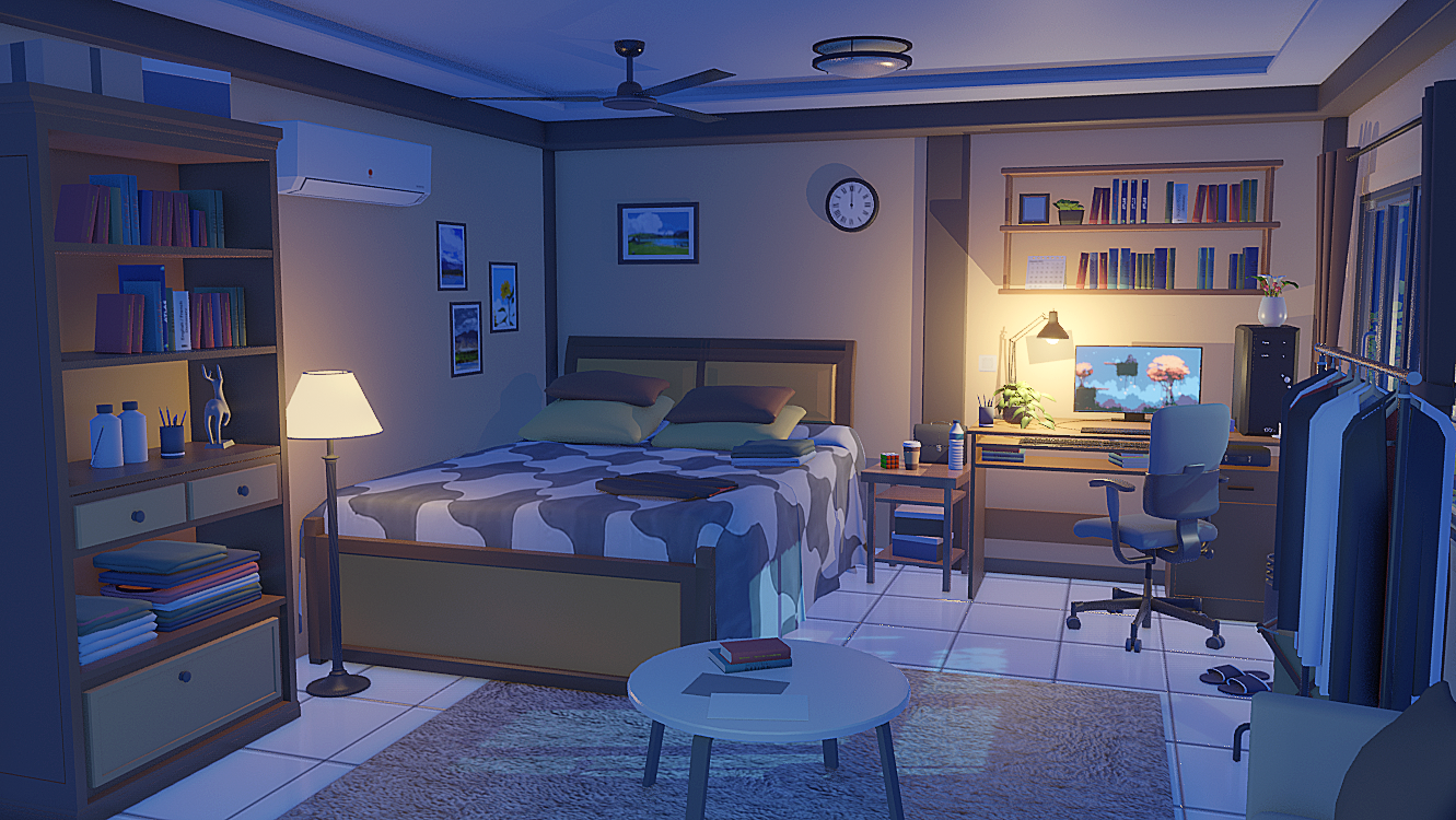 小伙伴们好,这是我制作了夜晚小房间 场景,喜欢的小伙伴可以购买哒(^▽^)
