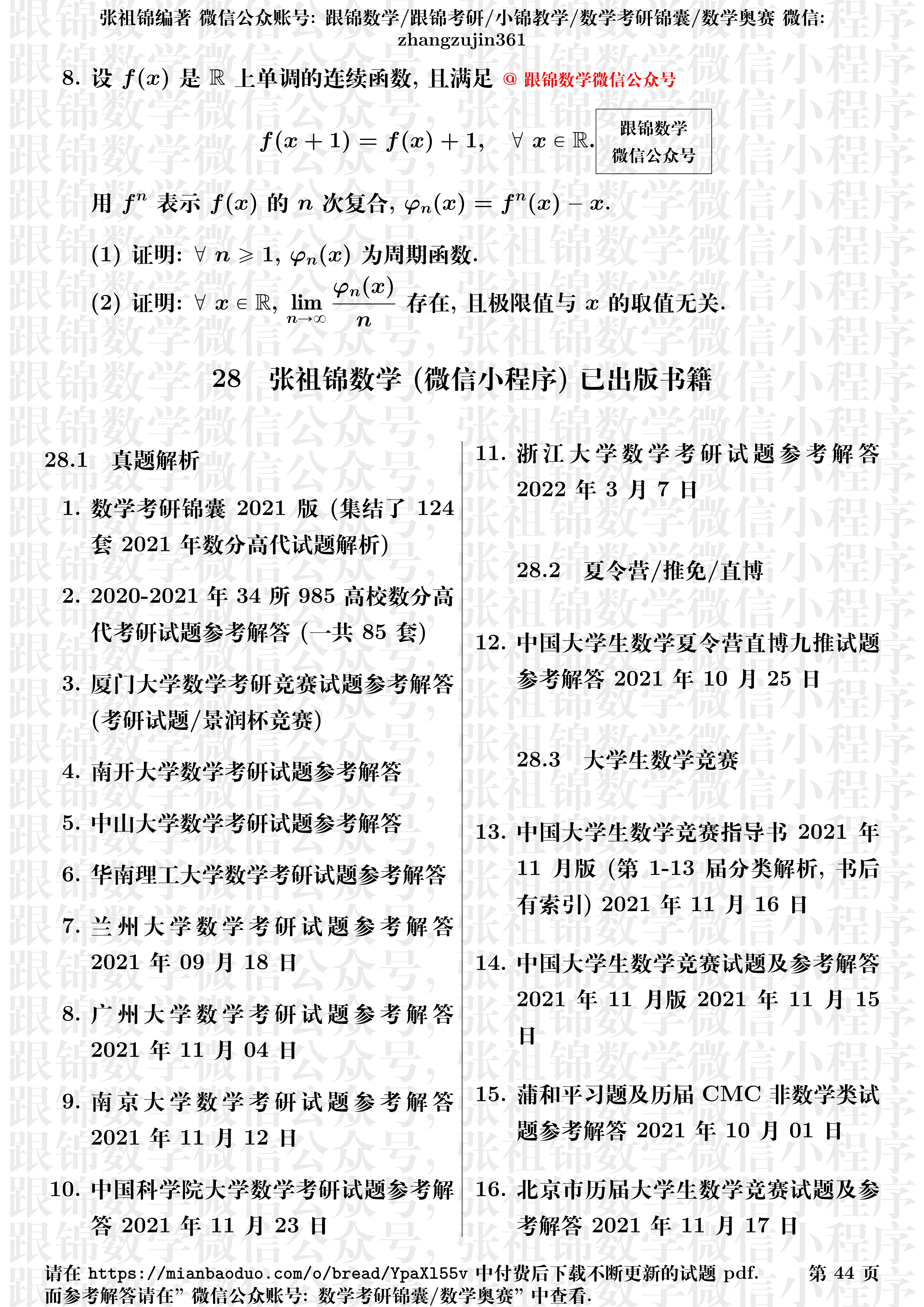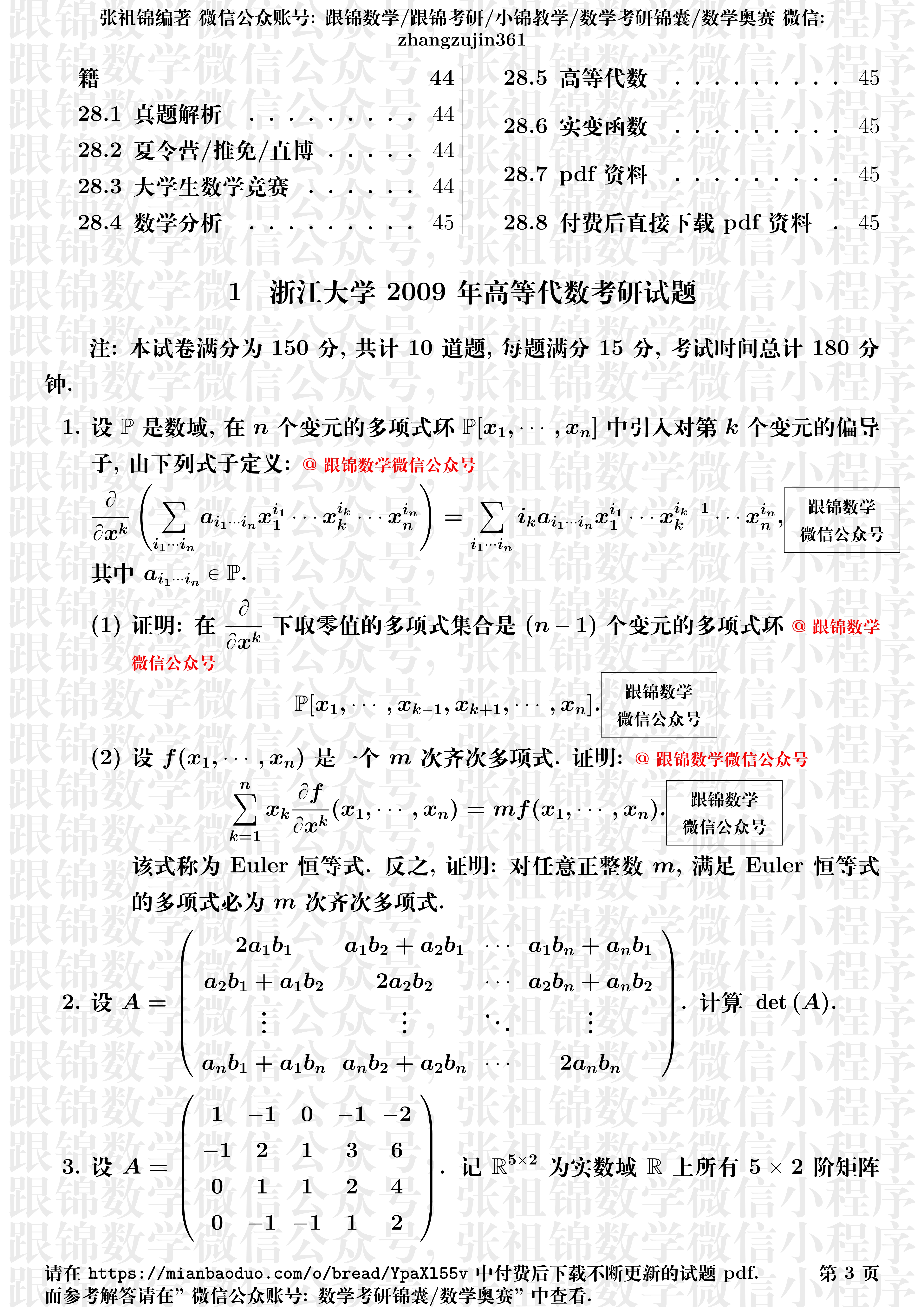 跟锦数学微信公众号浙江大学2009-2022年数学分析高等代数考研试浙江大学2009-2022年数学分析高等代数考研试题