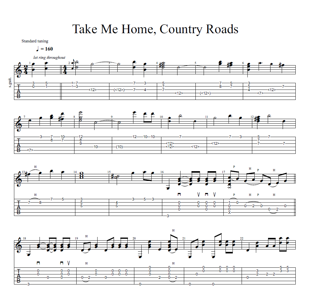 作品简介 曲目:Take Me Home Country Road演奏者:油管up扒谱:吉他加油站 - 油叔调弦:标准调弦变调夹: 不夹文件格式: PDF难度:⭐⭐高清PDF预览: 创作时间:2022-03-18 23:54:39