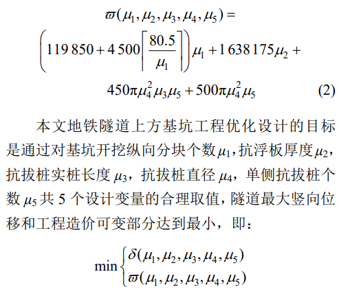 地铁隧道上方基坑工程优化设计的两个目标函数分别是:最小化隧道最大竖向位移和最小化工程造价可变部分