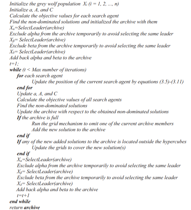 MOGWO算法原理参考:Mirjalili S , Saremi S , Mirjalili S M , et al. Multi-objective grey wolf optimizer: A novel algorithm for multi-criterion optimization[J]. Expert Systems with Applications, 2015, 47:106-119.