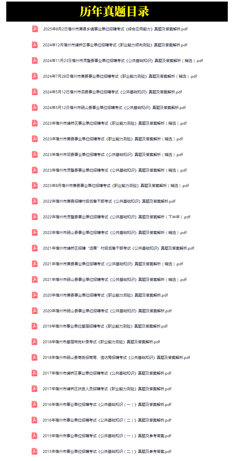 2015年-2025年宿州市事业单位招聘考试笔试历年真题28套