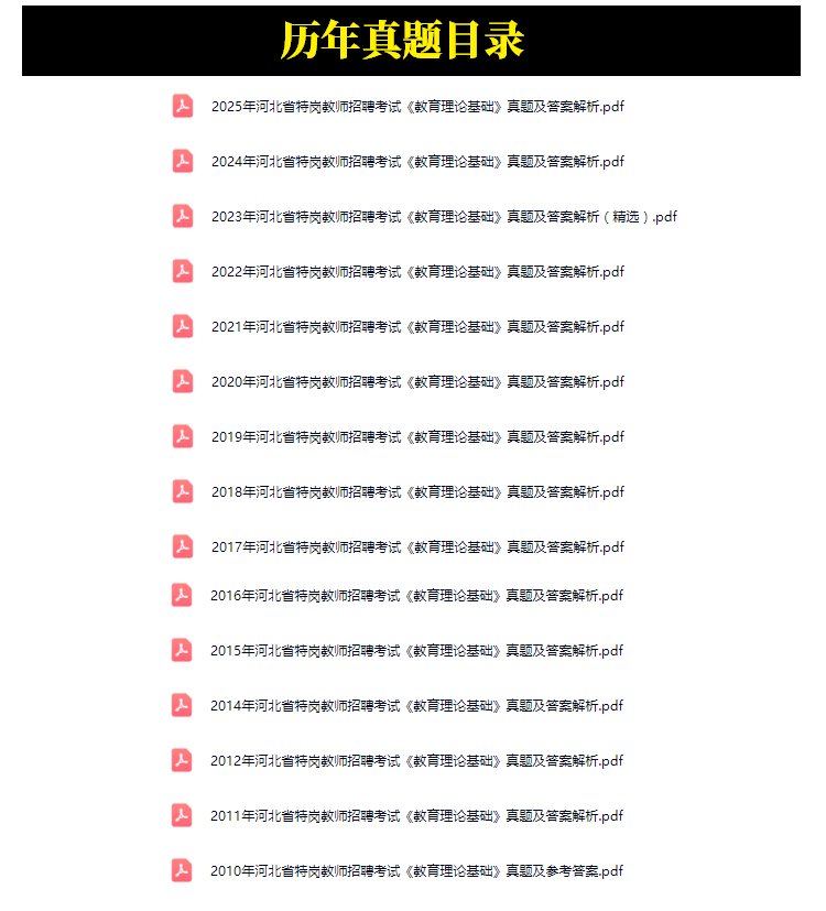 2010年-2025年河北省特岗教师招聘考试笔试历年真题15套(持续更新)
